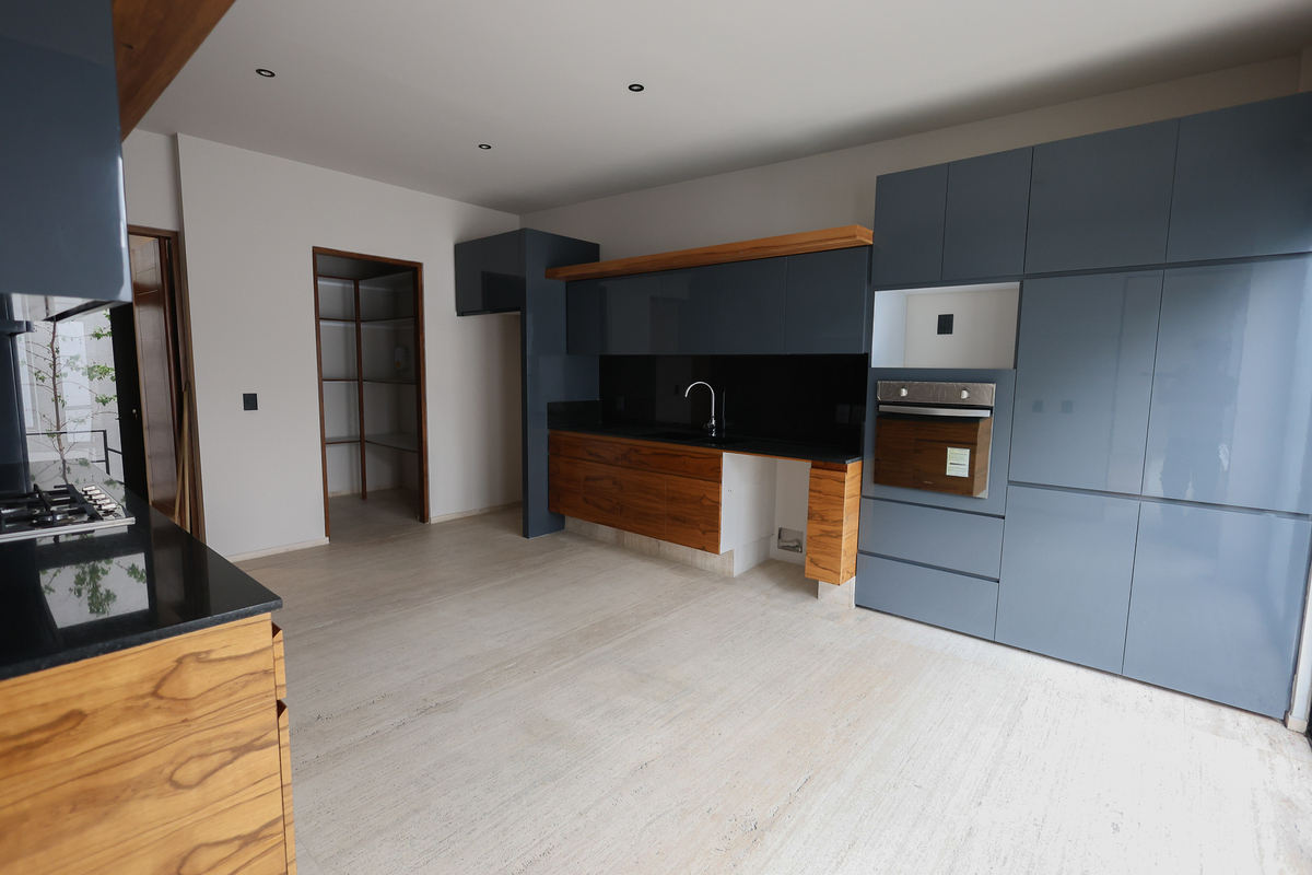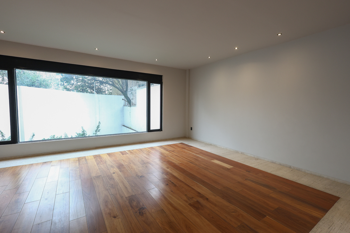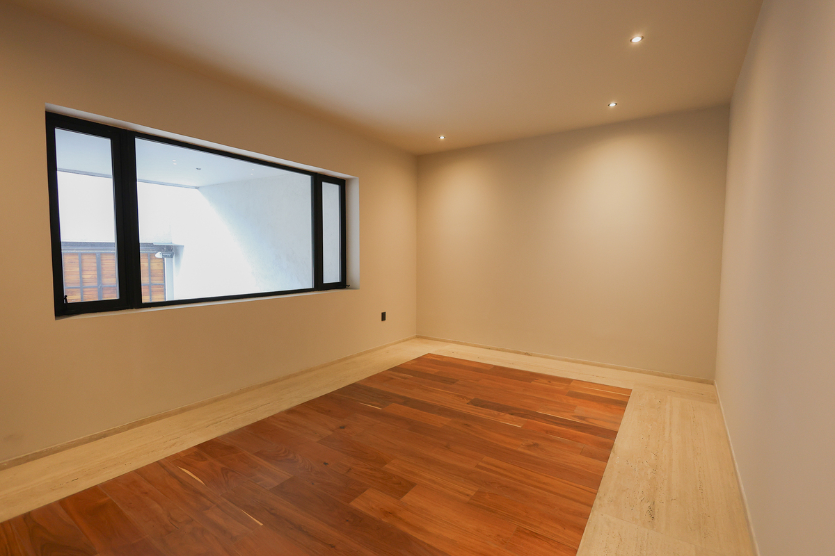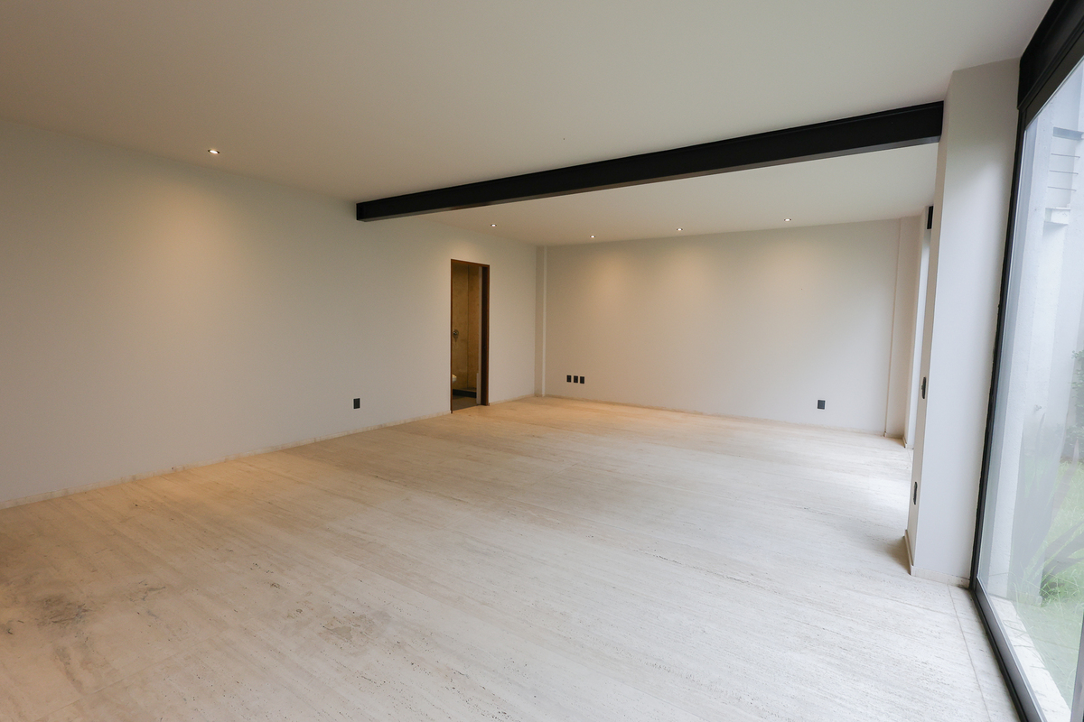 On the lower level, there is a large living room with a full bathroom and direct access to the 75 m² garden, perfect for gatherings or family events. This level also includes a spacious cellar, independent service area, and a room with a bathroom for the driver. On the upper floor, a central skylight and a balcony frame the entrance to three bedrooms, all with walk-in closets, private bathrooms, and green views, as well as a comfortable family room and linen closet. This newly completed residence combines luxury, functionality, and an excellent location. Come and see it.Descubre esta espectacular residencia de estilo moderno ubicada en una de las zonas más codiciadas de San Jerónimo. Su diseño contemporáneo resalta desde la fachada, con grandes ventanales, vegetación ornamental y un garaje para cuatro autos. Al ingresar, te recibe una atmósfera luminosa con techos altos, acabados en mármol en la mayor parte de la casa, detalles en madera y una distribución impecable. La planta principal ofrece una amplia área social con vistas al jardín privado, una cocina integral de diseño, medio baño para visitas y un espacio cerrado ideal para oficina, estudio o gimnasio.
