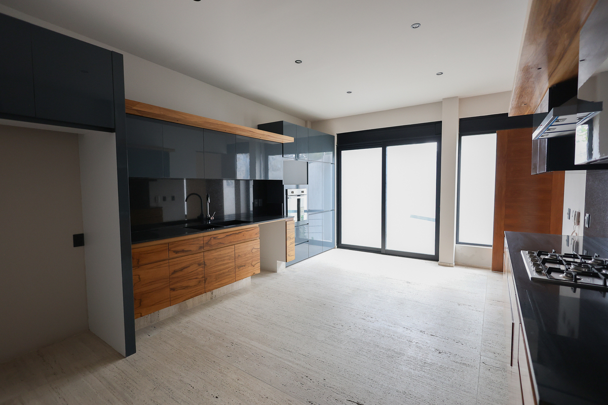 Discover this spectacular modern-style residence located in one of the most sought-after areas of San Jerónimo. Its contemporary design stands out from the facade, with large windows, ornamental vegetation, and a garage for four cars. Upon entering, you are welcomed by a bright atmosphere with high ceilings, marble finishes in most of the house, wooden details, and an impeccable layout. The main floor offers a spacious social area with views of the private garden, a designer integrated kitchen, a half bath for guests, and a closed space ideal for an office, study, or gym.