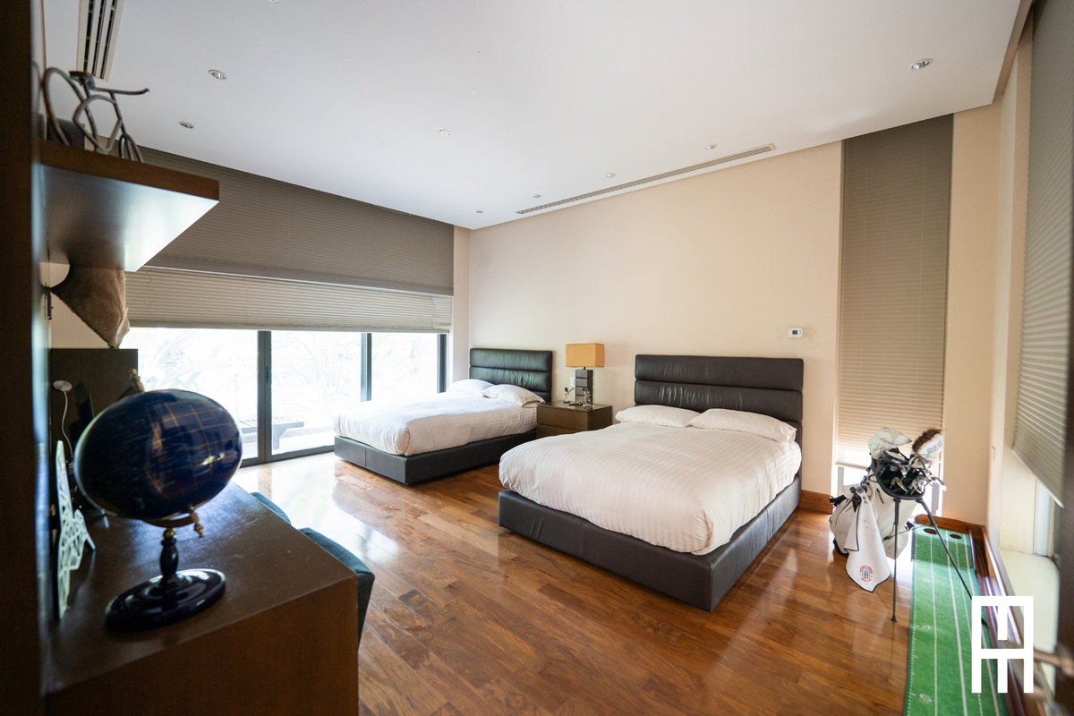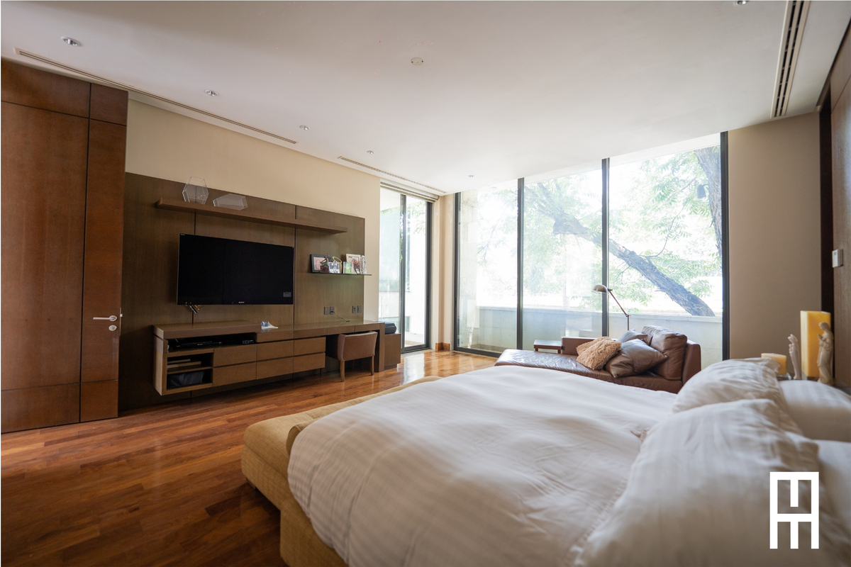 Recámara principal con baño completo, walk-in closet y vistas al jardín.
