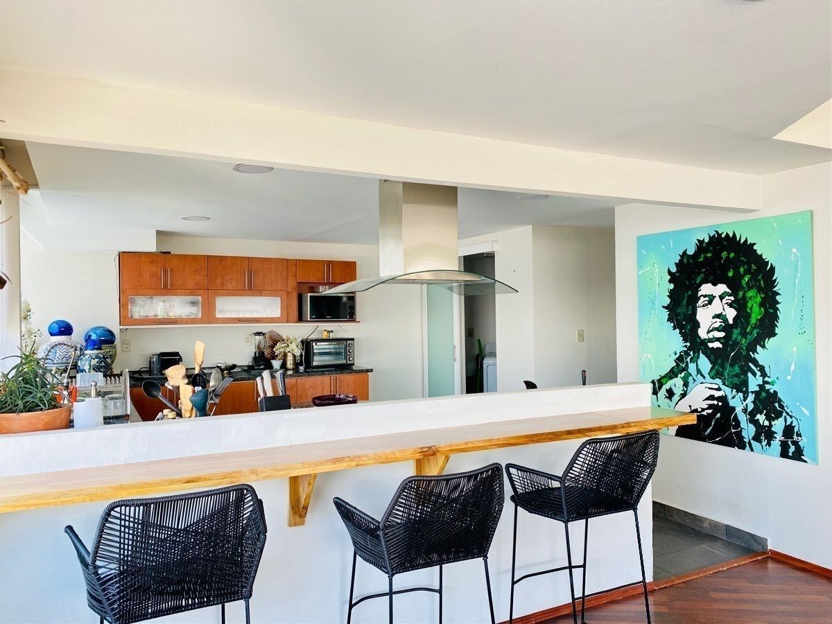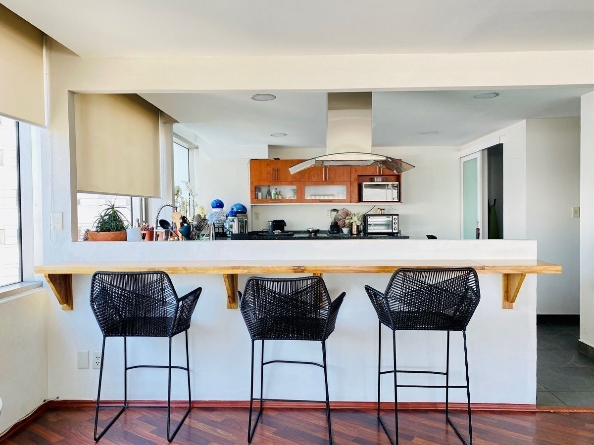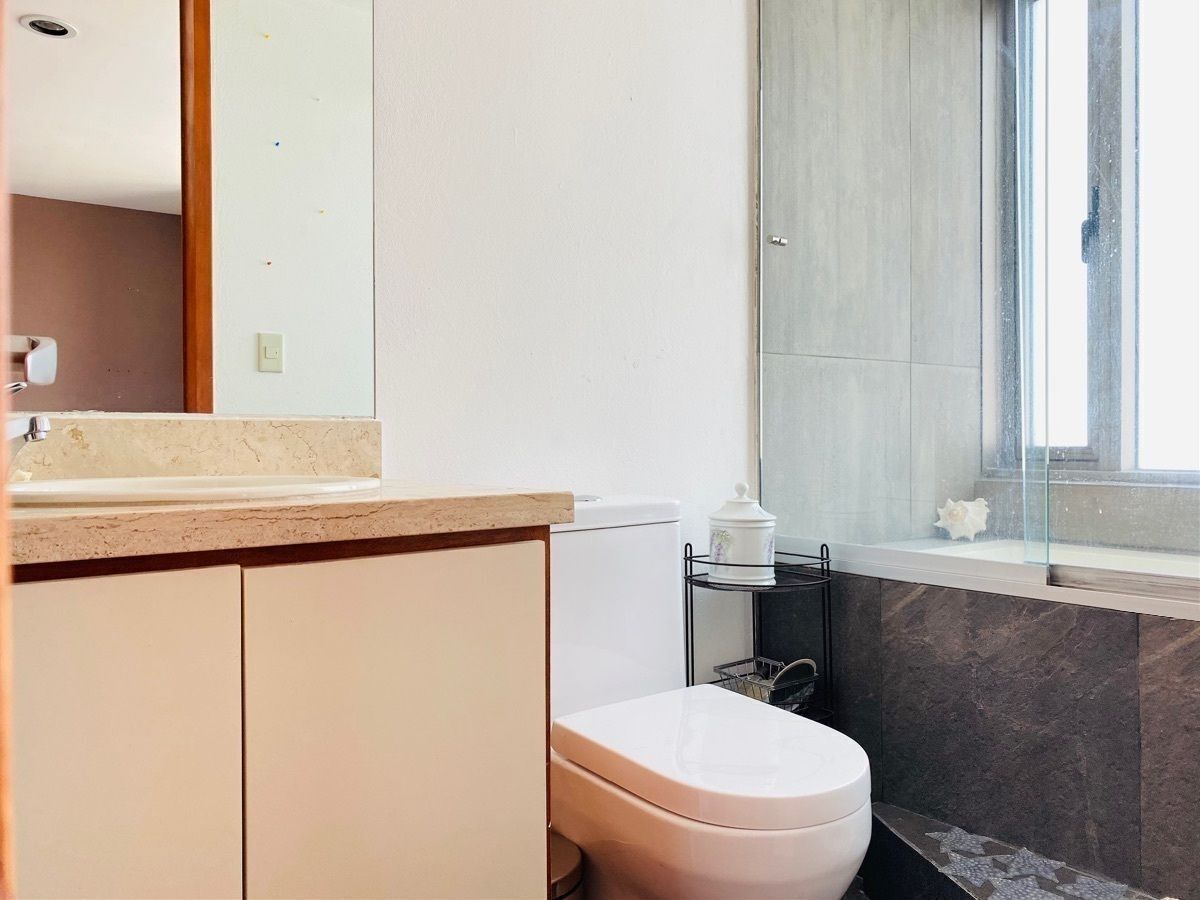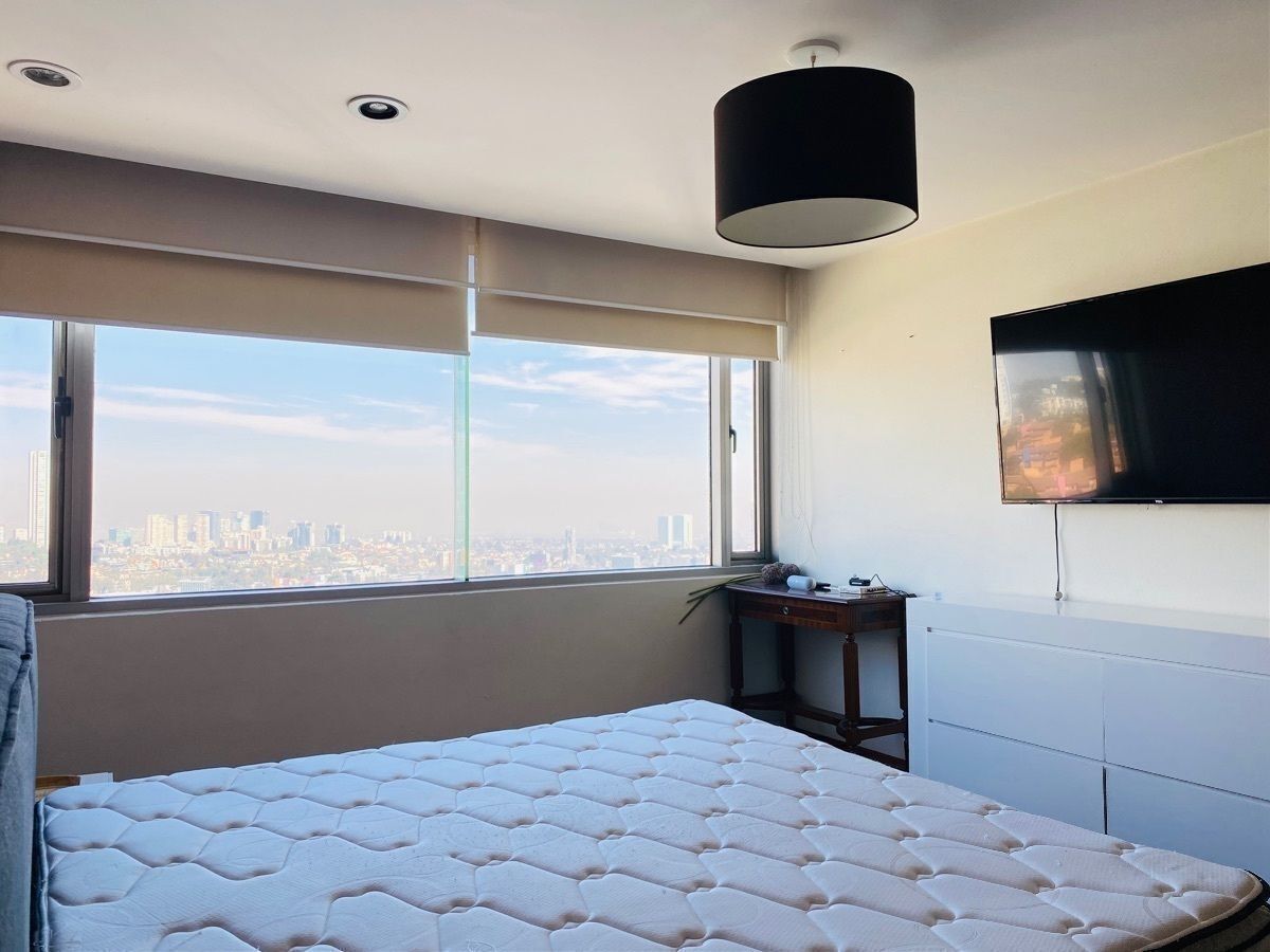 Steps away from La Méxicana Park. Live happily with a wonderful view from this well-equipped and tastefully furnished apartment, full of light and magnificent temperature. It has a huge living room, bar, half bathroom for guests, a very good-sized open kitchen with breakfast nook and counter. Service entrance. Cabinets and pantry, laundry room with washer and dryer. Two very good-sized bedrooms with bathroom, the main one with walk-in closet. Linen closet. 2 covered parking spaces, storage room, double security. 24/7. Three elevators and one for cargo. Amenities: Pool, jacuzzi, wading pool, adult lounge, multipurpose room for 100 people, with support kitchen and storage, terrace, meeting and cinema rooms, children's playroom, cardio and weight gym, gardens, children's playground, pet area among others.A pasos del Parque La Méxicana. Vive felíz con una vista maravillosa desde este departamento equipado y amueblado con muy buen gusto, lleno de luz y magnifica temperatura. Tiene una enorme estancia, bar, medio baño de visitas, cocina abierta de muy buen tamaño con desayunador y barra. entrada de servicio. Alacenas y despensa , lavandería con lavadora y secadora. .Dos recamaras de muy buen tamaño con baño, la principal