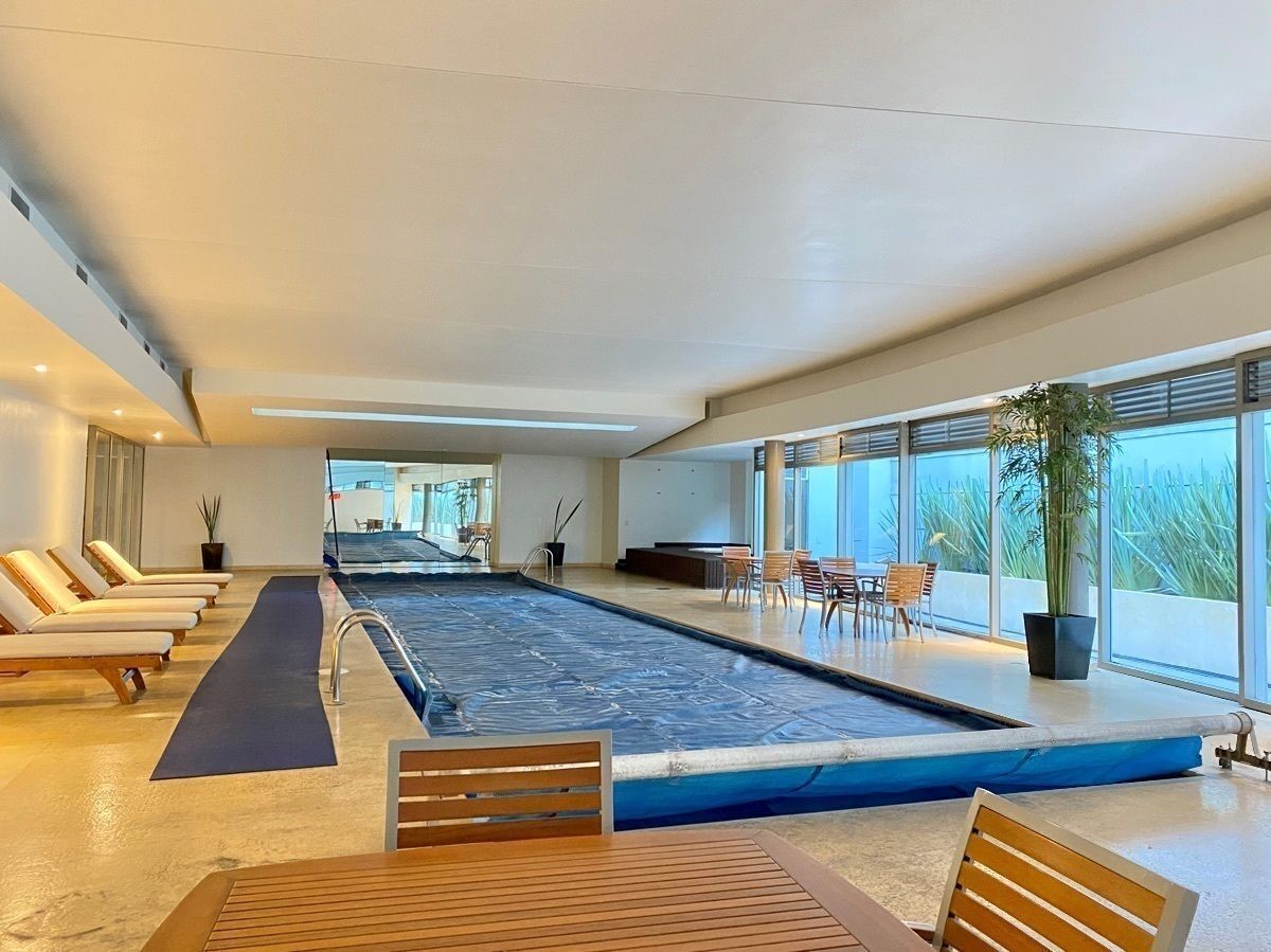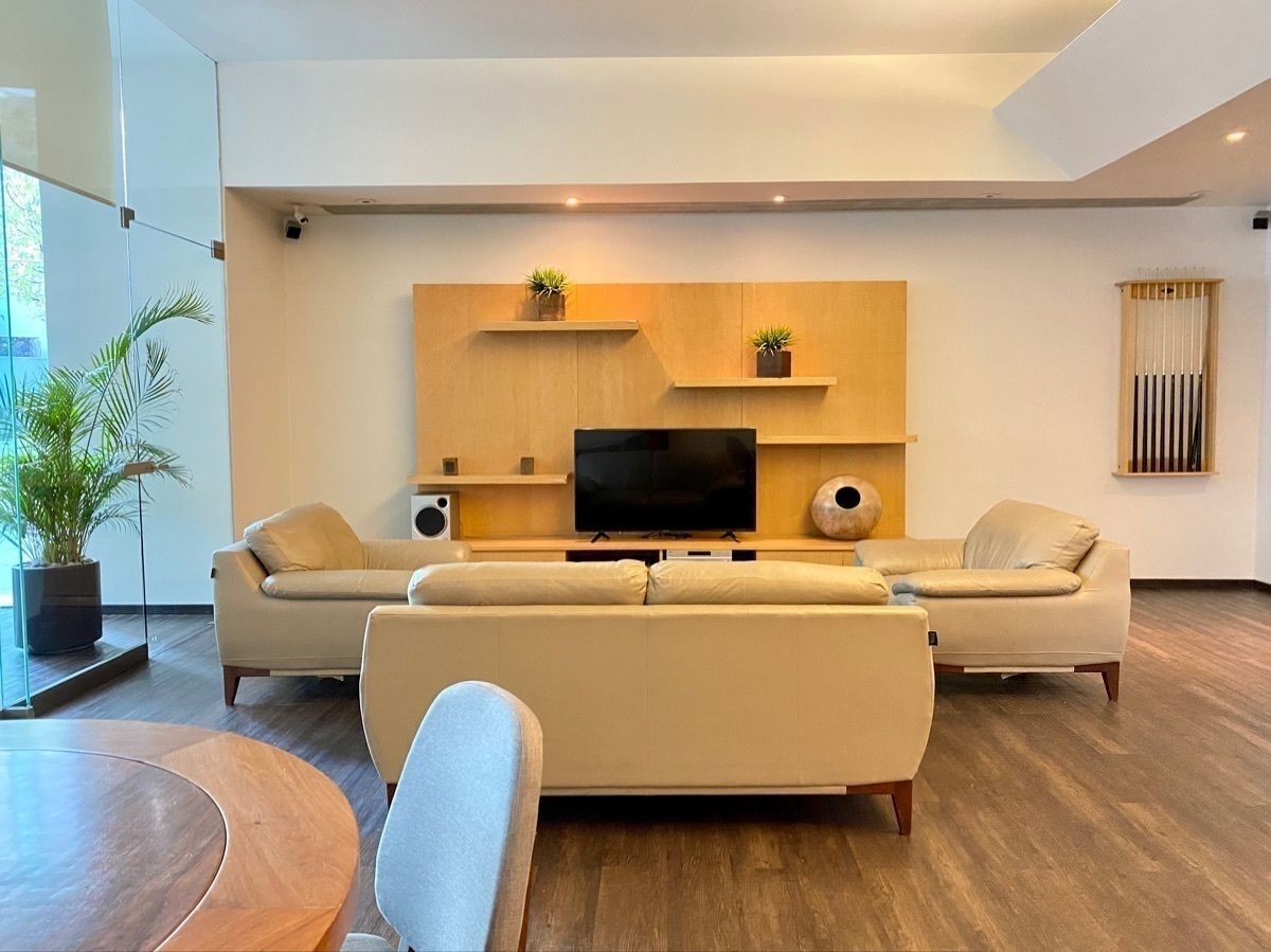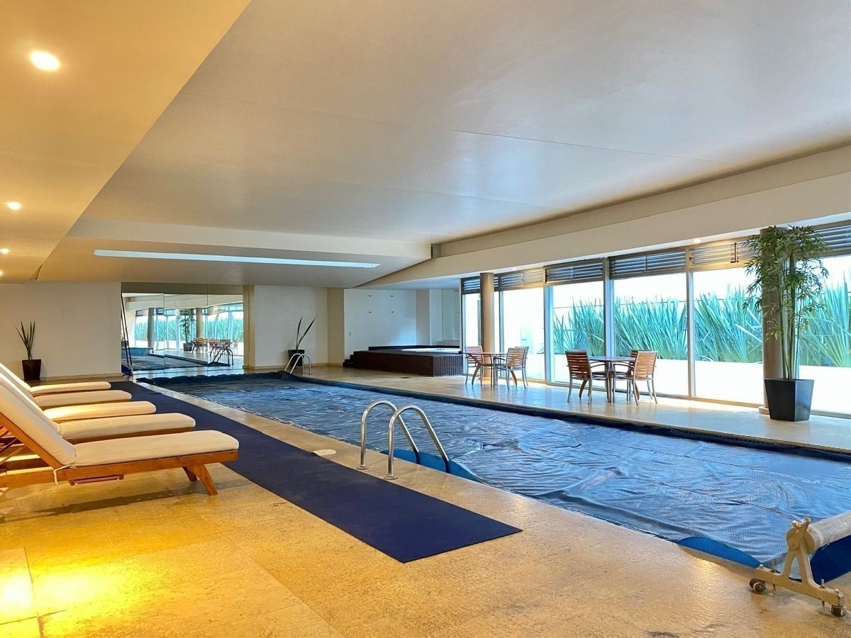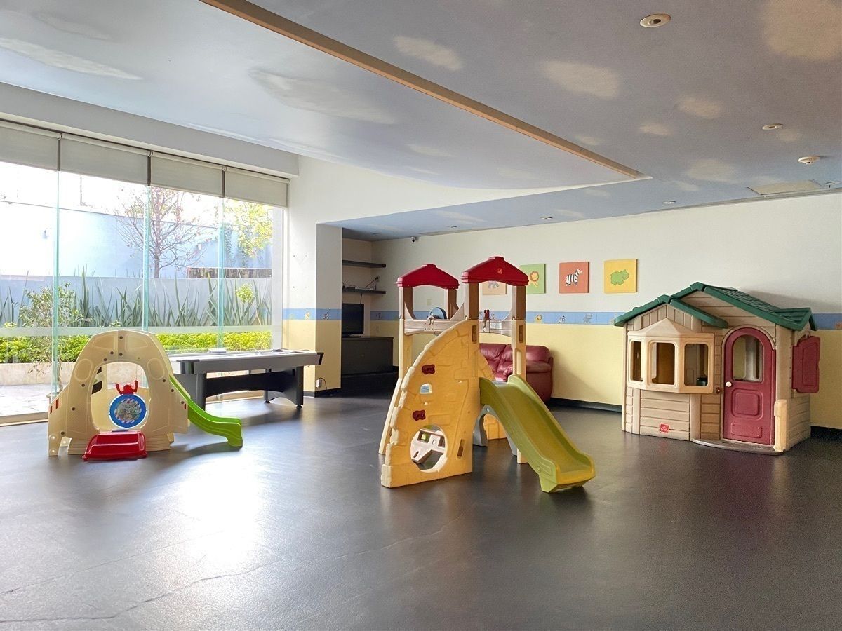 Amenidades: Alberca, jacuzzi, chapoteadero, salón de adultos, salon de usos multiples para 100 personas , con cocina de apoyo y bodega, terraza, salas de juntas y de cine, Ludoteca, gym de cardio y pesas, jardines, juegos de niños, area para mascotas entre otras.