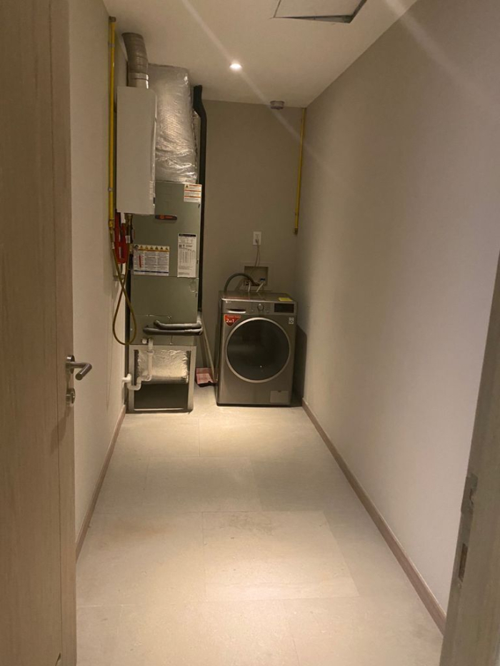 Sala, comedor, cocina abierta. Cuarto de lavado. Con electrodomĂ©sticos. 2 baños completos. 2 recámaras. 1 pequeño cuarto que podrĂa destinarse para vestidor, alacena u oficina.