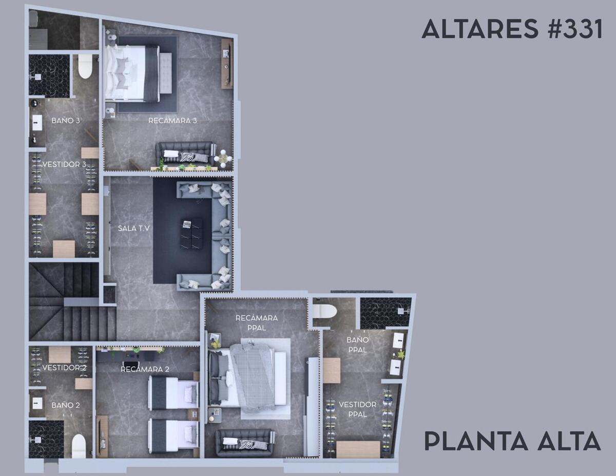 ▫️ 4 recámaras con baño c/u. (1 PB con closet + 3 PA con vestidor c/u)