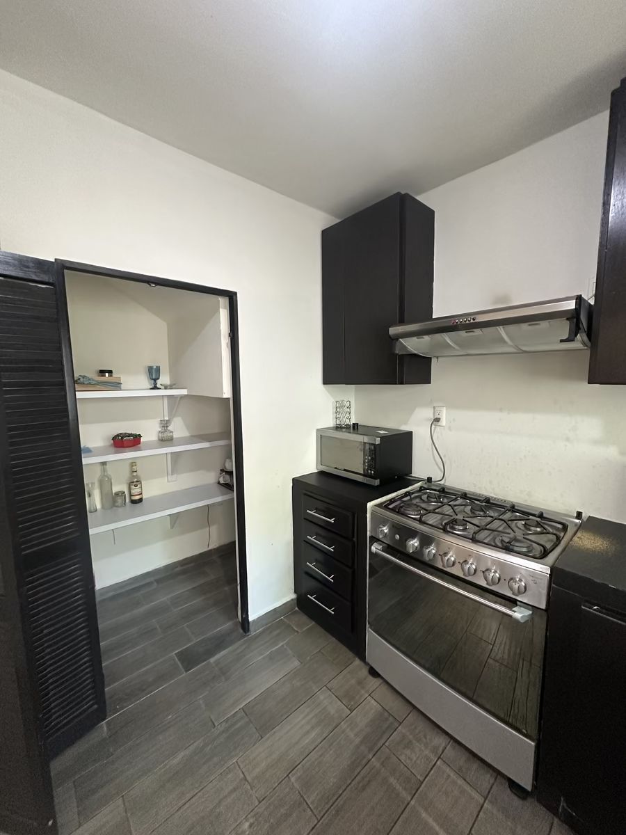 La propiedad ya cuenta con todos los muebles, de sofá en sala , comedor, cocina integral, climas en habitaciones, camas en habitaciones, pantallas en habitaciones, cortinas de baño, utensilios de cocina, refrigerador, estufa, absolutamente todos los muebles para solo mudarse (Todo el mobiliario esta inventariado).