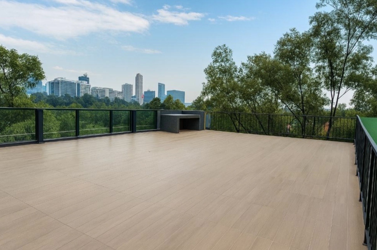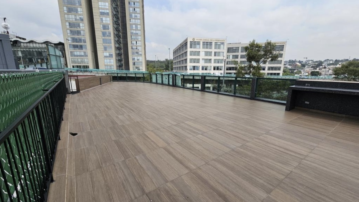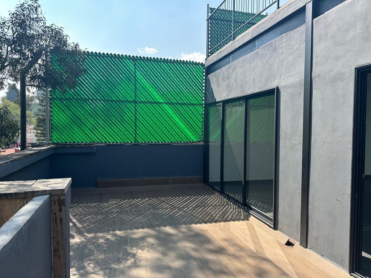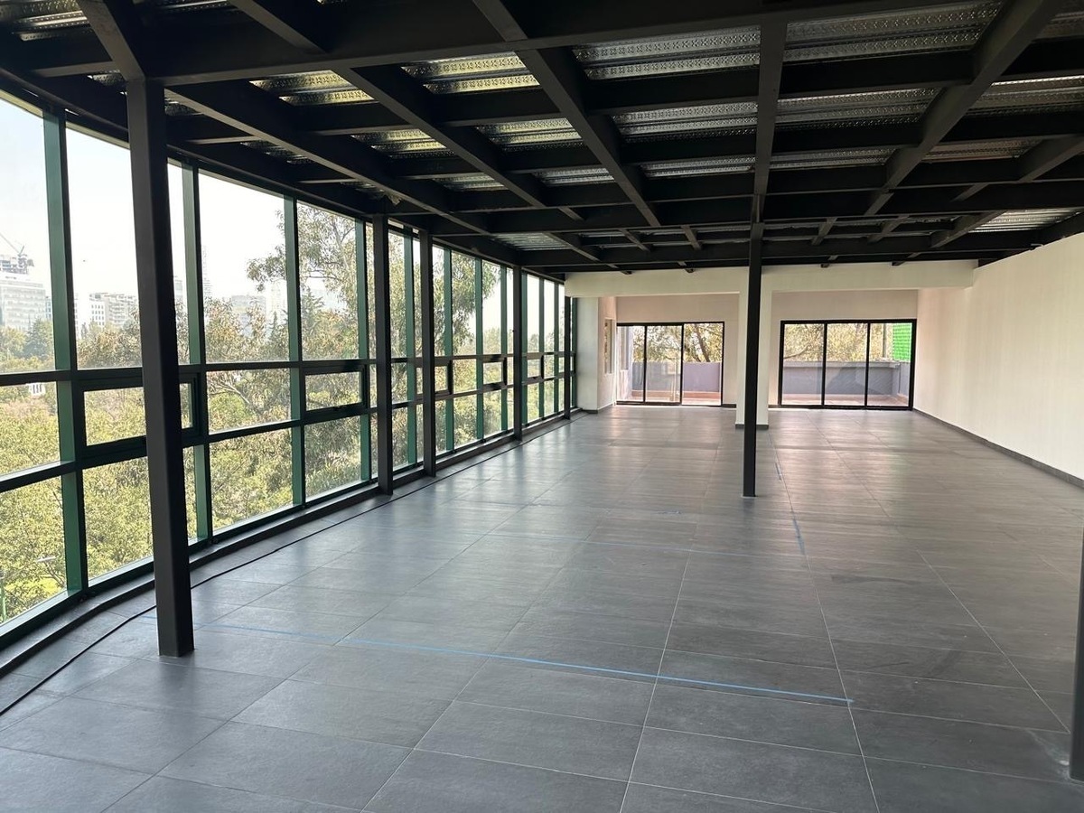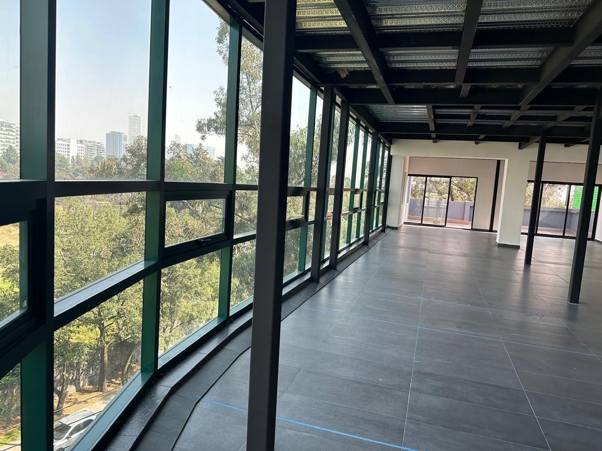 For rent, a spacious office of 260m2 with a spectacular terrace of 200m2 in a modern building located on the side of Blvd. Adolfo López Mateos in San Ángel Inn. Very close to the neighborhoods of San Ángel, Guadalupe Inn, Campestre, and Altavista. Beautiful tree-lined view and good natural light. It has 2 bathrooms and 6 parking spaces (there is a possibility of additional parking for an extra cost).