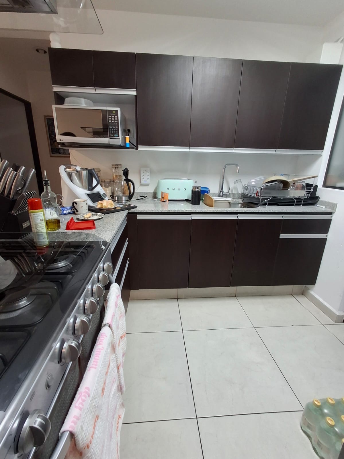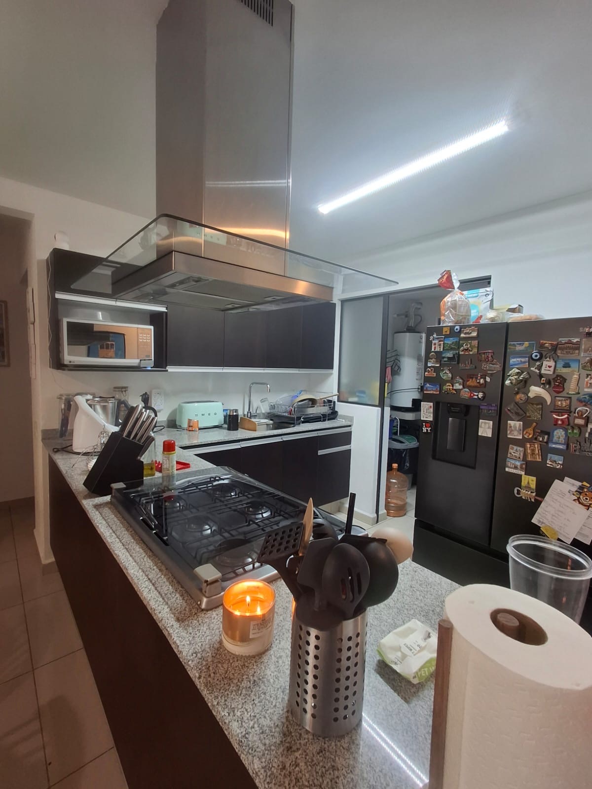 Cocina abierta con barra de granito