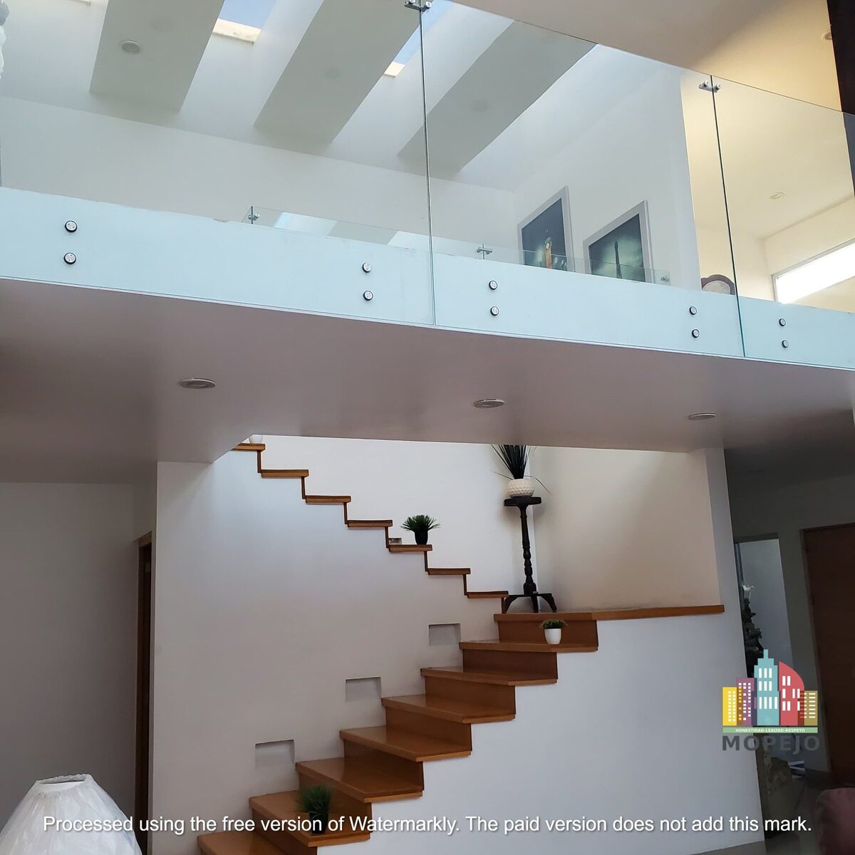 Planta alta: recámara principal con baño completo, vestidor y balcón. 2 recamaras con closets, baño compartido. Sala de estancia.