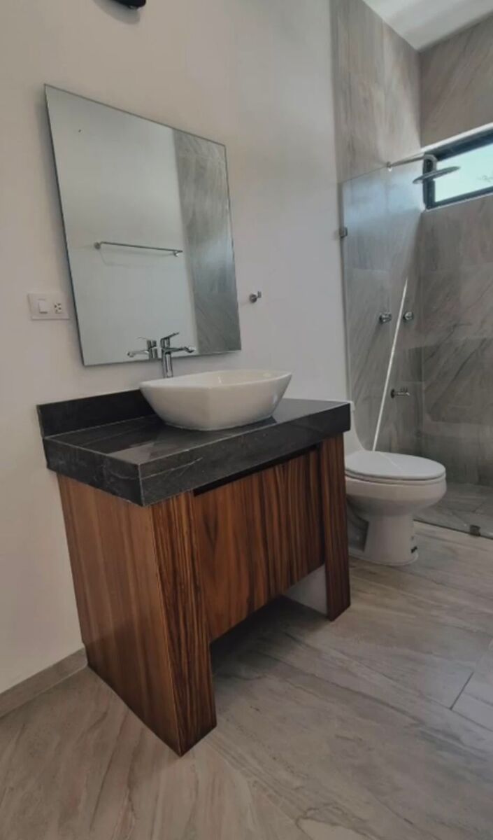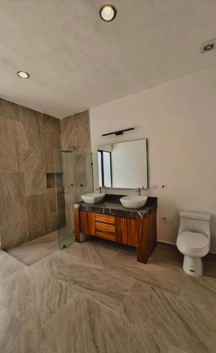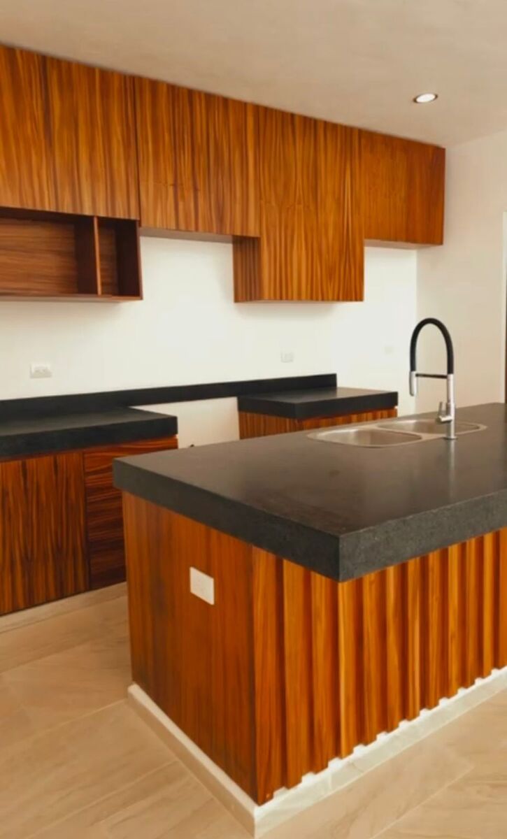 LIVING ROOM, DINING ROOM WITH DOUBLE HEIGHT AND LARGE WINDOWS WITH PANORAMIC VIEW OF THE GARDEN AND POOL., 2 JUNIOR BEDROOMS WITH FULL BATH AND WALL CLOSET SPACE WITH WINDOWS TO ACCESS THE POOL, THE MASTER BEDROOM WITH DRESSING ROOM, CLOSET AND FULL BATH ALSO WITH ACCESS TO THE POOL., OPEN KITCHEN WITH BREAKFAST ISLAND, INTEGRATING THE SOCIAL AREA, FULL BATH FOR VISITORS, PANTRY/STORAGE, POOL WITH CHUKUM FINISH WITH FILLING AND DRAINAGE WELL, AIR CONDITIONING IN LIVING ROOM AND BEDROOMS.