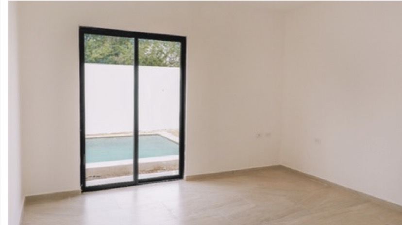 SALA, COMEDOR A DOBLE ALTURA CON VENTANAL Y VISTA PANORÁMICA HACIA EL JARDÍN Y PISCINA., 2 HABITACIONES JUNIOR CON BAÑO COMLETO Y ESPACIO DE CLOSET DE PARED CON VENTANALES PARA ACCEDER A LA PISCINA, LA RECÁMARA PRINCIPAL CON VESTIDOR, CLOSET Y BAÑO COMPLETO TAMBIÉN CON ACCESO A LA PISCINA., COCINA BIERTA CON ISLA DESAYUNADORA, QUE INTEGRA EL ÁREA SOCIAL, BAÑO COMPLETO DE VISITAS, ALACENA/BODEGA, PISCINA EN ACABADO CHUKUM CON POZO DE LLENADO Y DE DESAGUE, AIRE ACONDICIONADO EN SALA Y RECÁMARAS.