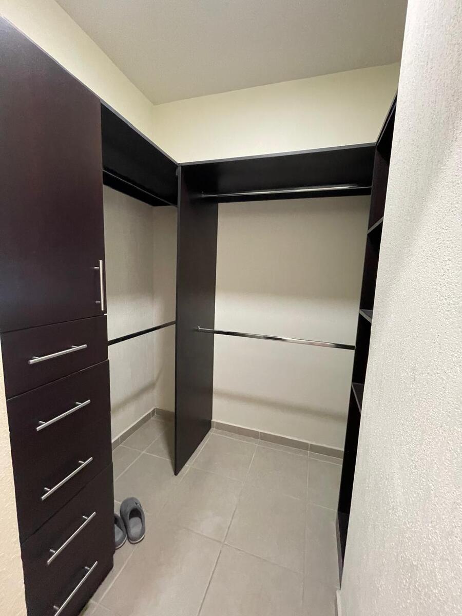 Planta alta: 2 recamaras, la principal con techos doble altura, aire acondicionado, baño privado y closet vestidor, la recamara secundaria cuenta con closet, en el pasillo se encuentra un baño completo y un closet de blancos.