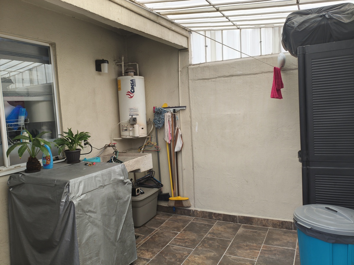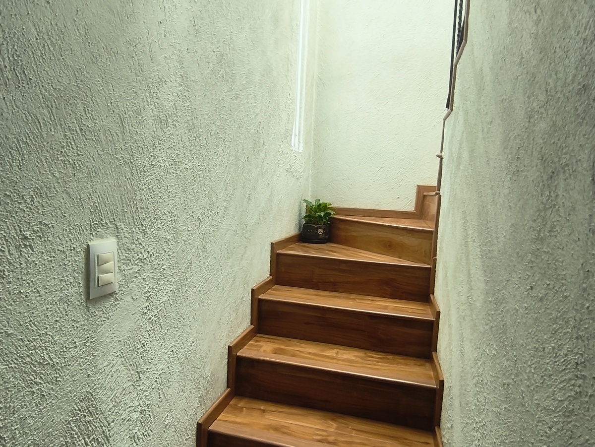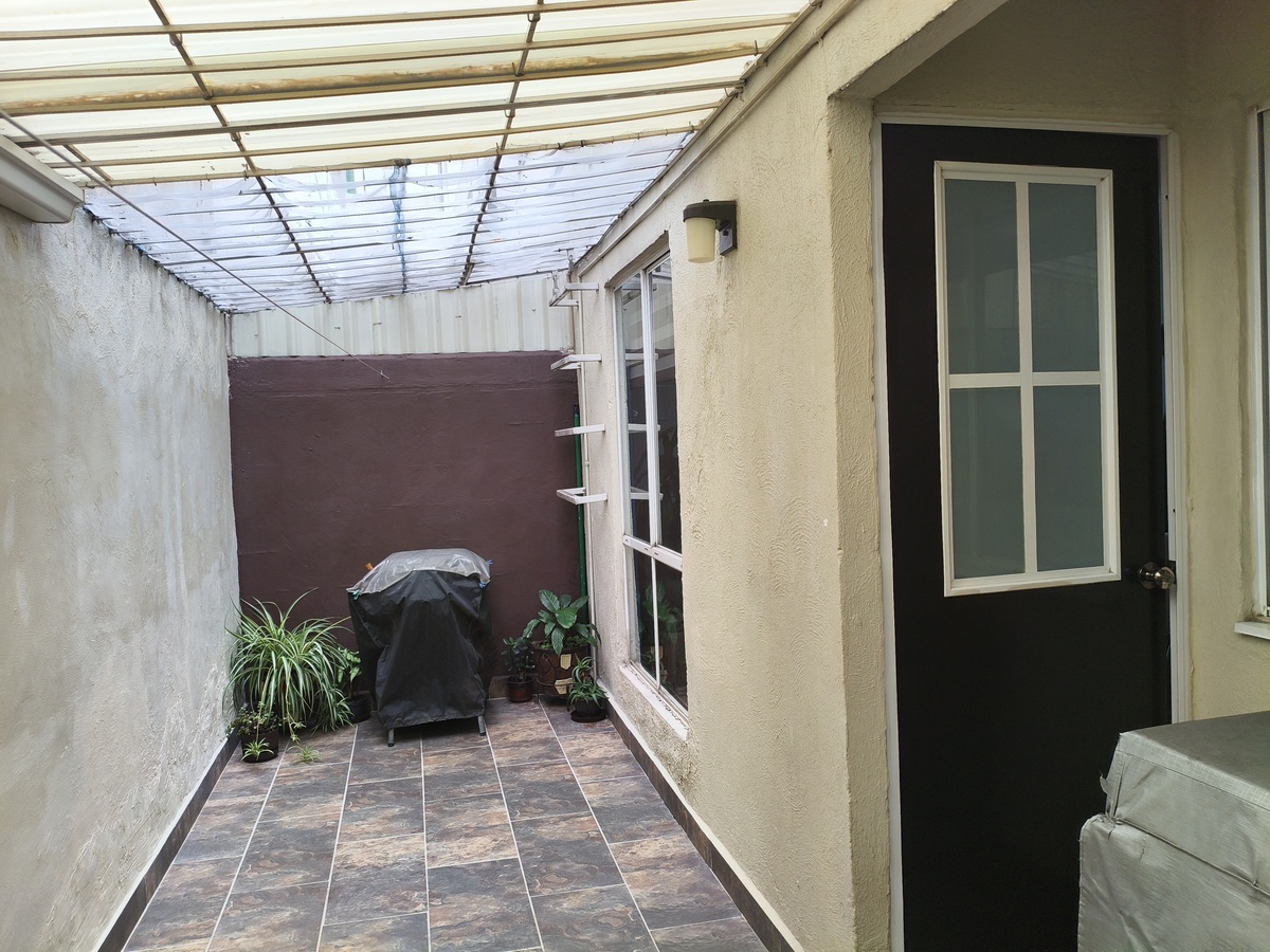 En planta baja, encontramos la estancia de sala comedor de muy buen tamaño, piso laminado de alta calidad en toda la casa y en excelente estado, cocina integral, pequeña bodega y espacio para alacena. Al fondo está el patio trasero que tiene espacio para una pequeña área de convivencia y el espacio para área de lavado, todo con pisos de