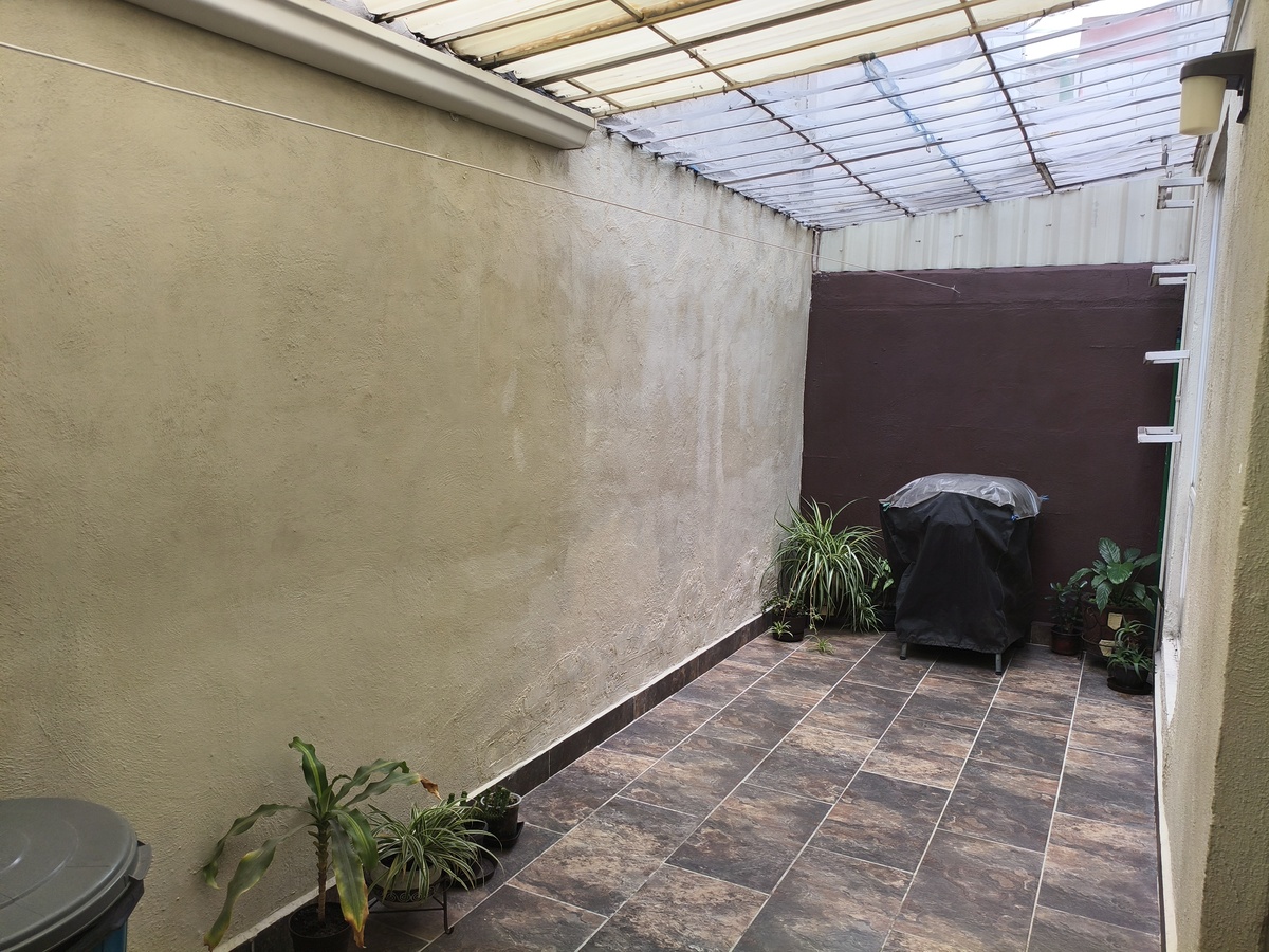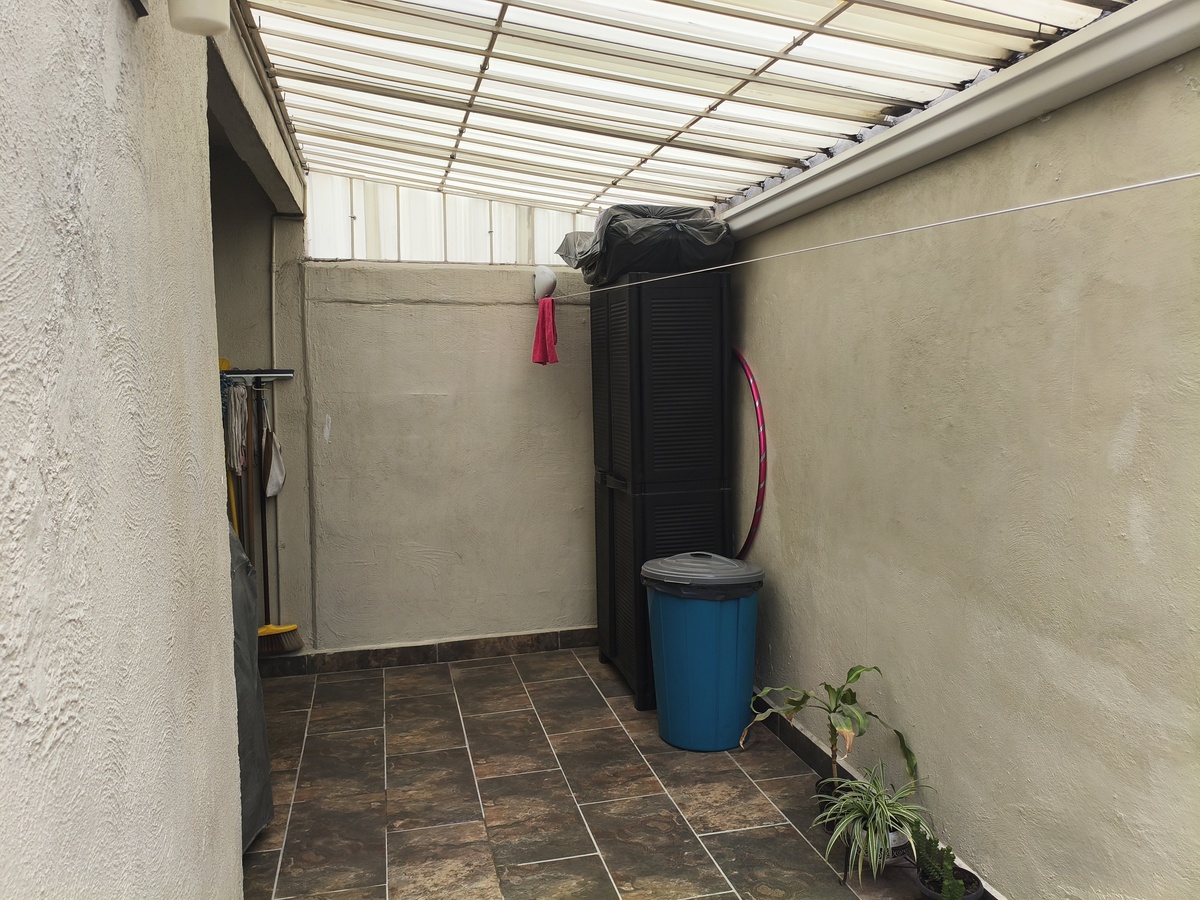 On the ground floor, we find a living-dining room of very good size, high-quality laminated flooring throughout the house and in excellent condition, integral kitchen, small storage room, and space for a pantry. At the back is the backyard which has space for a small gathering area and space for a laundry area, all with ceramic floors.
