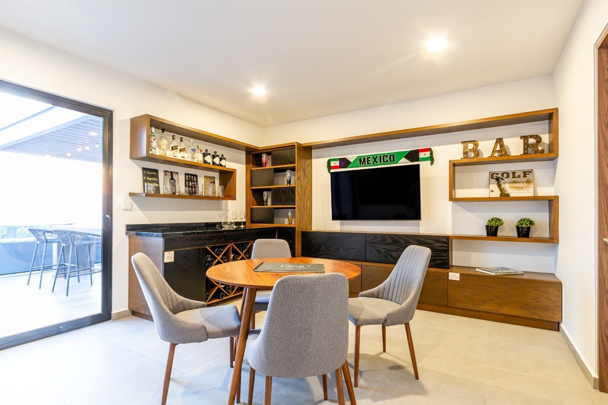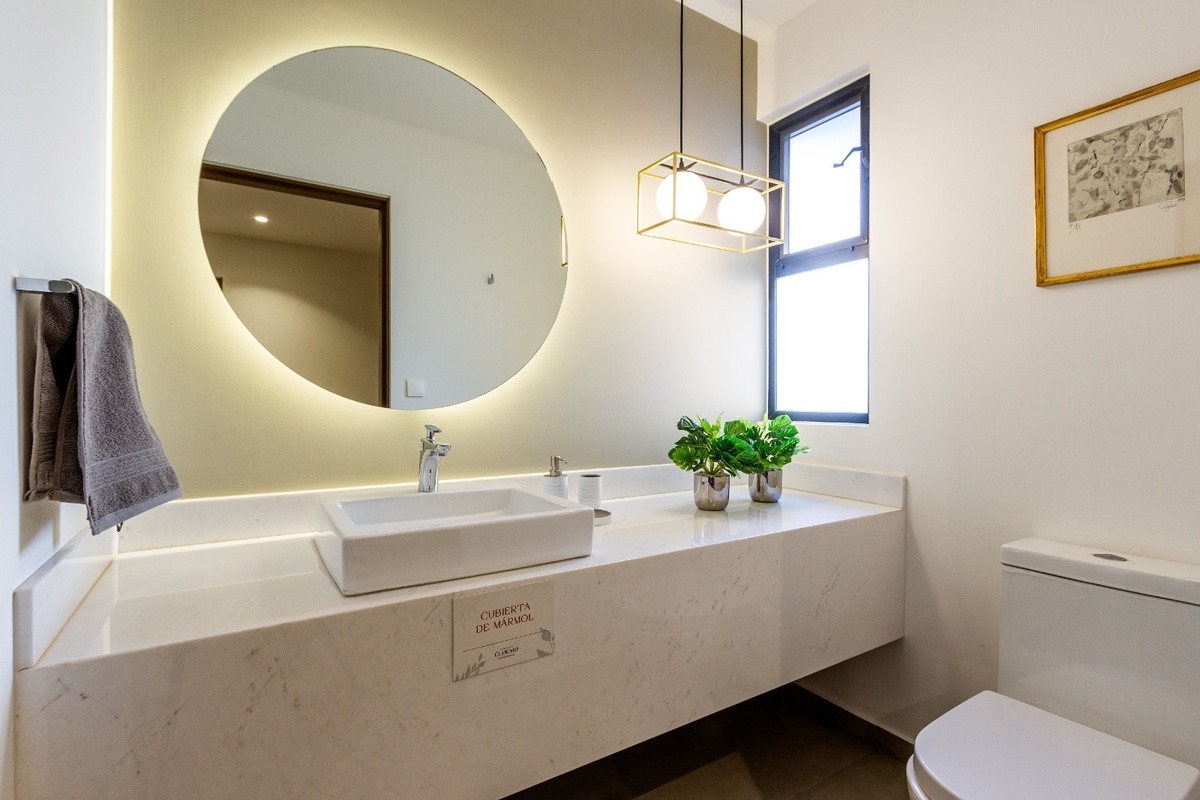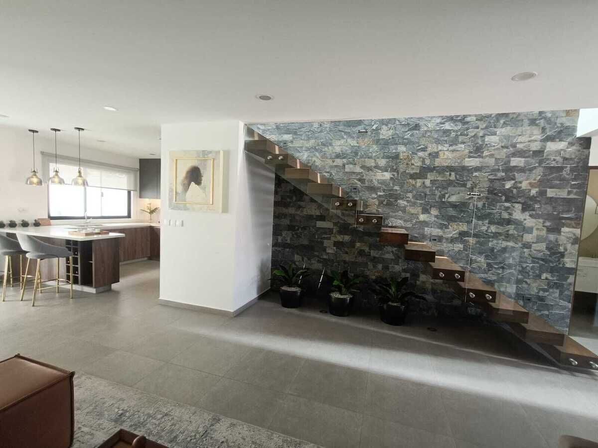 Un muro detallado de piedra con luces indirectas adornan las escaleras para subir al segundo nivel donde podremos encontrar 3 recámaras cada una con su propio baño. La habitación principal con walk in clóset.