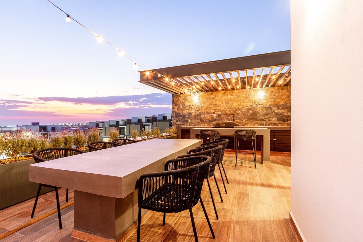 En planta baja encontramos Sala - Comedor con acceso al jardín trasero con pérgola y terraza.