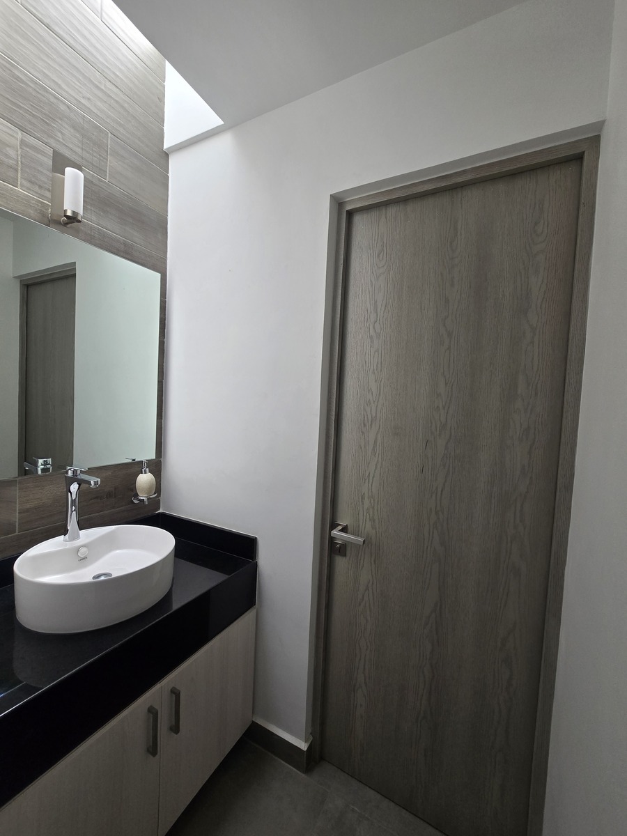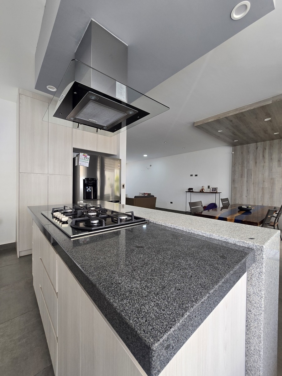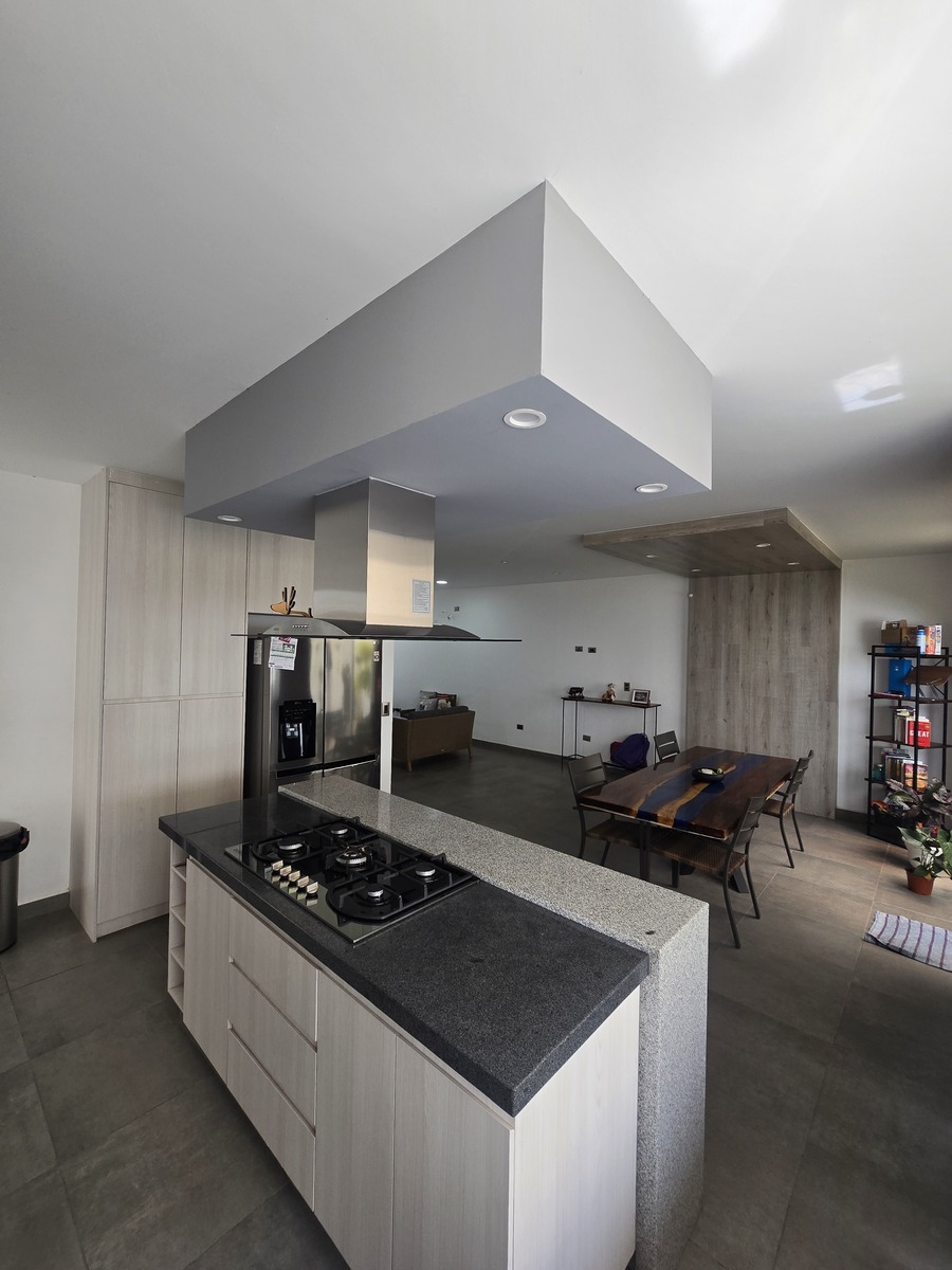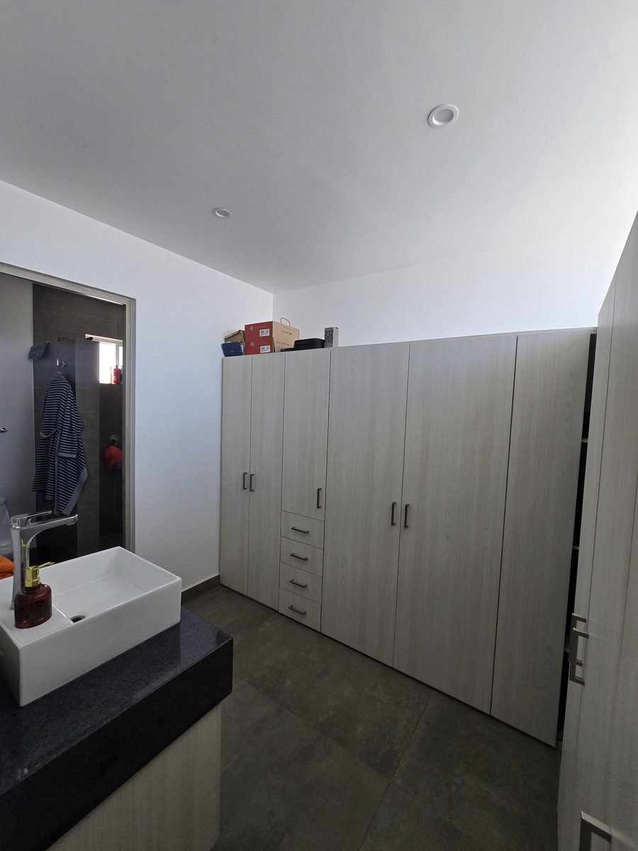 Se ofrece a la venta una residencia excepcional en Cavalia, Aguascalientes, ubicada al Norponiente. La propiedad cuenta con estacionamiento techado para dos vehículos, una cocina espaciosa con barra de granito, un patio de servicio, y un jardín. Adicionalmente, dispone de una recámara de servicio con baño completo. En la planta alta, se encuentran cuatro recámaras; tres de ellas secundarias comparten un baño completo, mientras que la recámara principal incluye vestidor y baño completo. El tercer nivel ofrece un área de servicio y Un Roof garden
