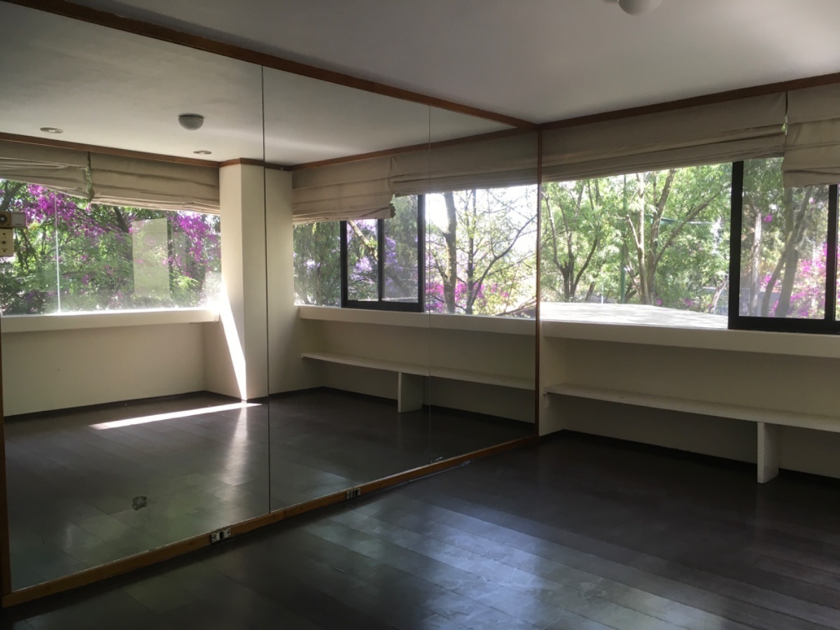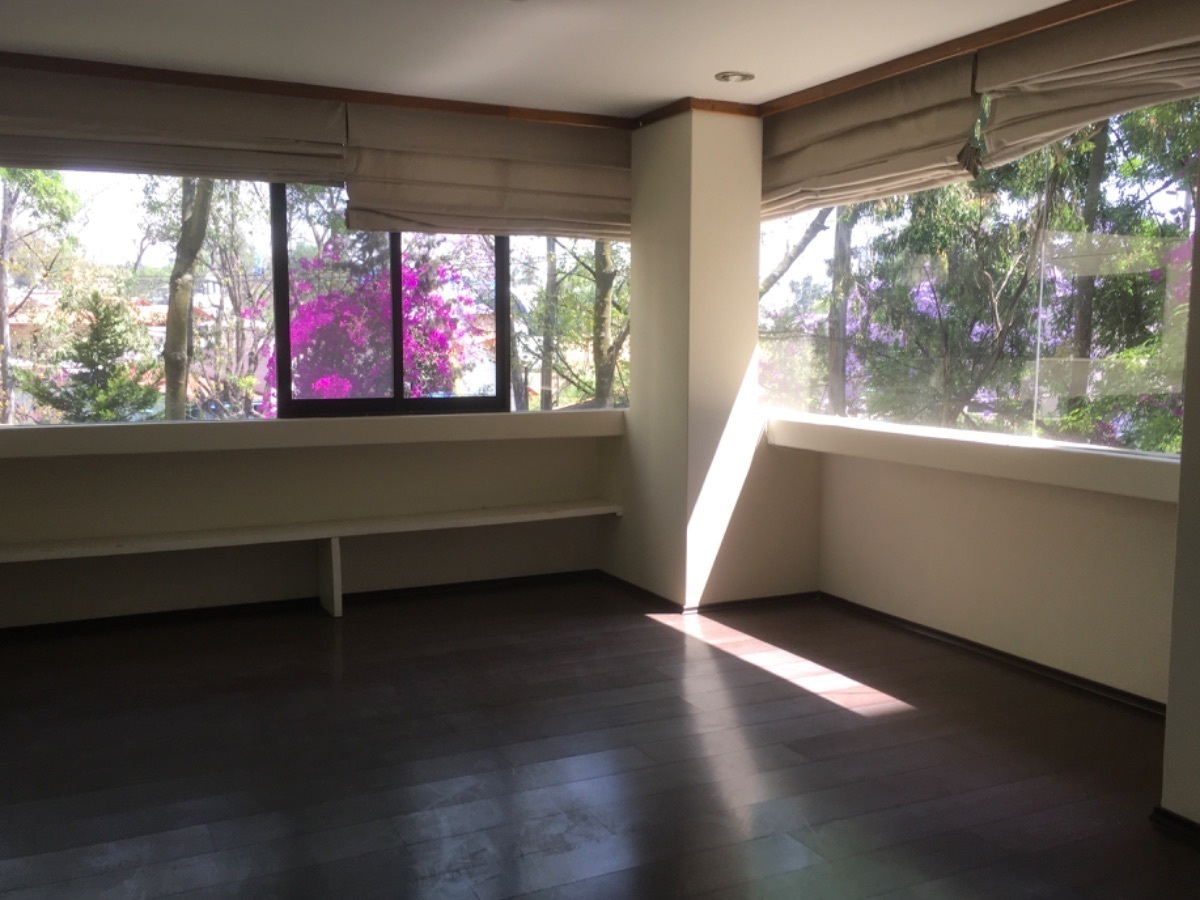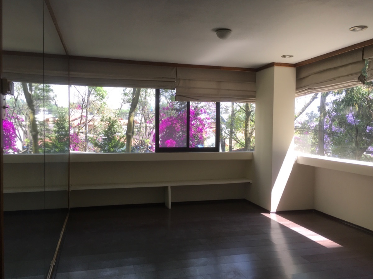 Apartment for sale with a view and adjoining the Tlalpan forest; 2 levels, double height, 3 bedrooms, the main one with large dressing room and jacuzzi. Very bright room with garden view. Fully equipped kitchen, TV room or study, service room with bathroom, laundry. Air conditioning, intercom, 3 parking spaces, 1 cellar. 24 hour surveillanceSe vende departamento con vista y colindancia al bosque de Tlalpan; 2 niveles, doble altura, 3 recámaras, la principal con amplio vestidor y jacuzzi. Estancia muy iluminada con vista al jardín. Cocina integral equipada, sala de TV o estudio, cuarto de servicio con baño, lavandería. Aire acondicionado, interfón, 3 estacionamientos, 1 bodega. Vigilancia 24 horas