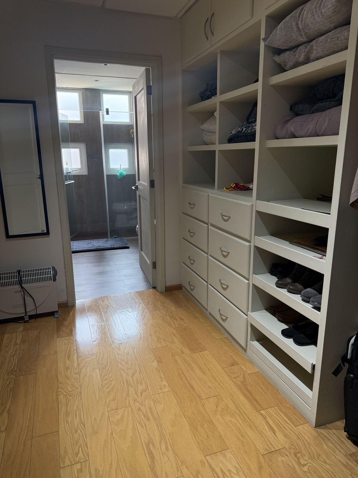 • Master bedroom with balcony, walk-in closet, and full bathroom.
