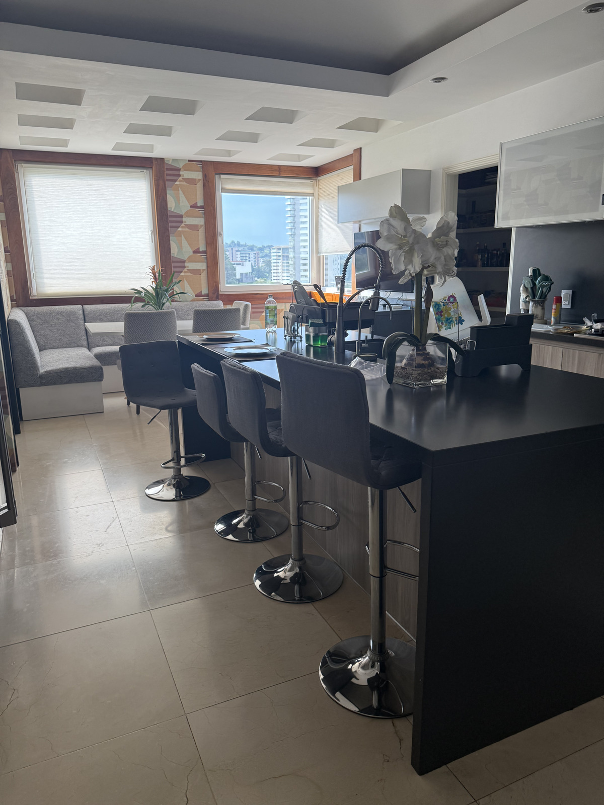 • Cocina equipada con isla, ideal para reuniones y espacio de trabajo.