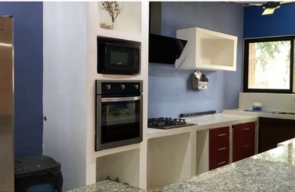 💥Cocina Equipada con horno de gas convencional, Parrilla de Gas , Horno de Microondas ,Campana, Refrigerador Ventiladores de techo