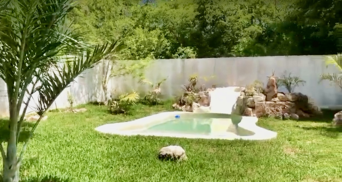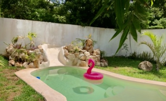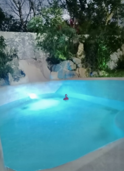 💥Piscina con acabado Chukum e iluminación Nocturna