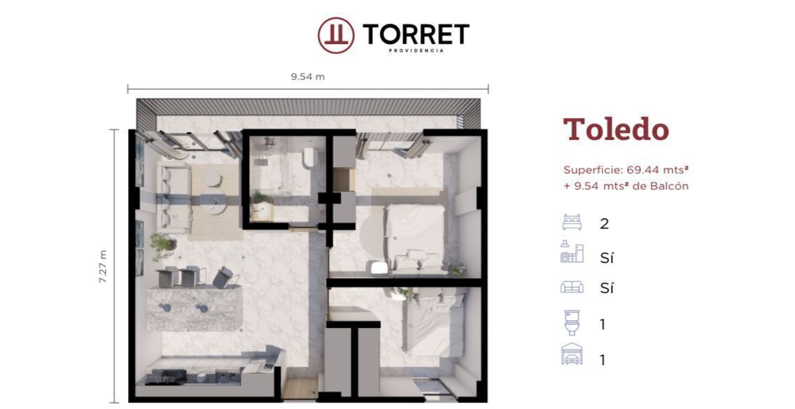 TOLEDO: $6,023,868.24. C- 69.44mts + 9.54 balcón