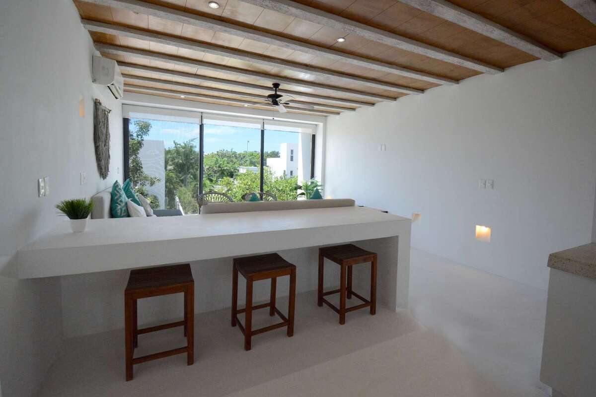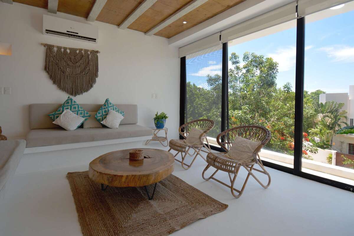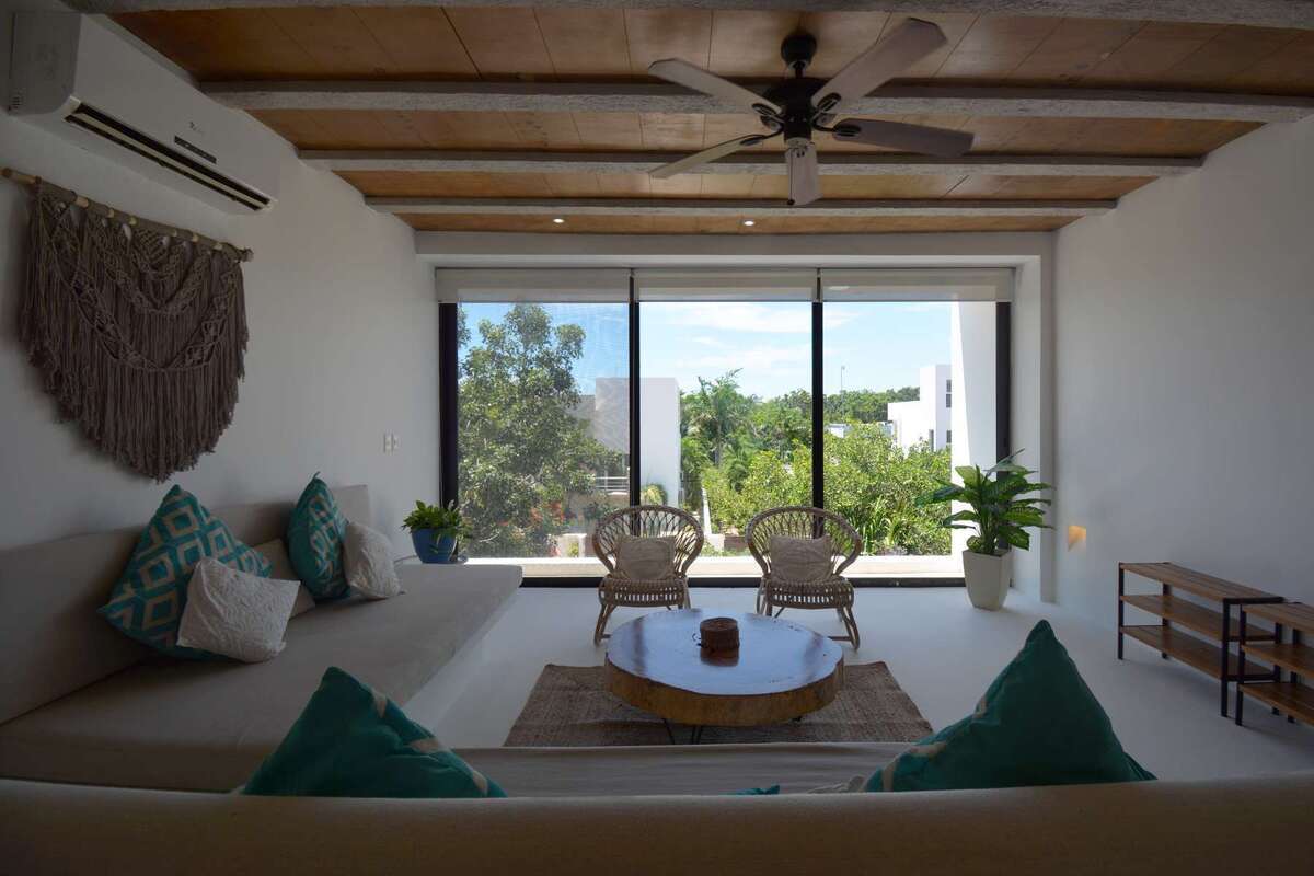 El ambiente del edificio y la comunidad que lo habita es tranquila y amigable. La estética del departamento representa a la perfección la vibrante esencia de Tulum.