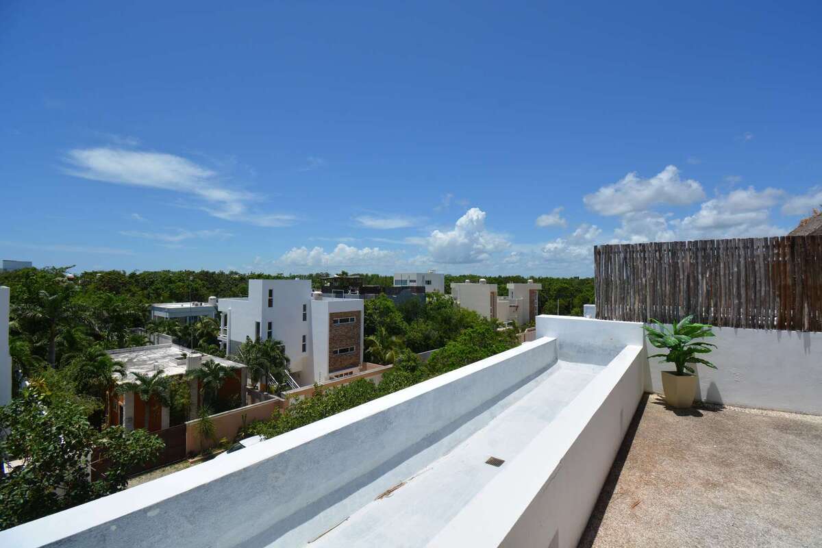 This 2-bedroom Penthouse features large windows that allow natural light to enter and a rooftop where you can read a book or sunbathe comfortably on the loungers. Additionally, you can shower outdoors or eat and work in the palapa it offers.
