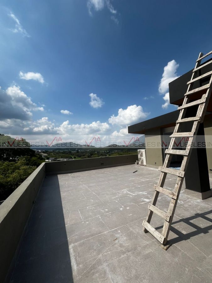 Rooftop: Covered outdoor social area with granite bar with preparation for refrigerator, sink, and grill, game room with bar area, from elevator shaft: 114500.Hermosa residencia ubicada en Sierra Alta 10 sector con amplio jardín, alberca, terraza y rooftop, en Carretera Nacional, con excelentes acabados. Cuenta con las siguientes áreas: