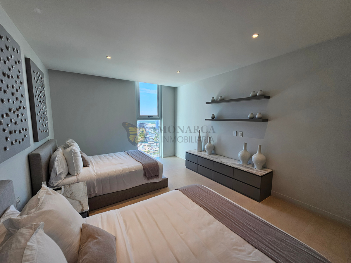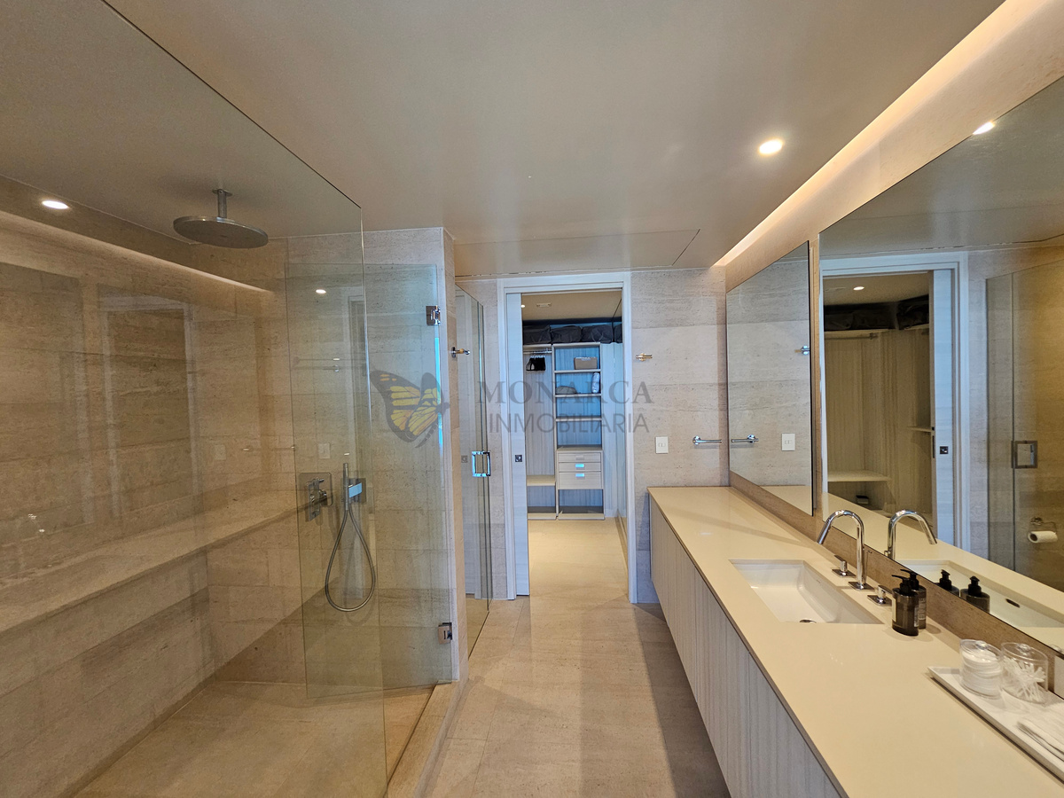 DONDE UN DISEÑO PERFECTO ENCUENTRA LA BELLEZA DE LA NATURALEZA –– Elegante elevador privado –– Techos de casi tres metros de altura en acabado liso en áreas comunes e interior del departamento –– Ventanales de piso a techo en vidrio laminado de baja emisividad para ahorro de energía –– Espaciosas terrazas de más de dos metros de profundidad, con barandales de cristal, y acceso desde las salas y dormitorios de cada residencia, con puertas corredizas de piso a techo, terrazas de diseño envolvente en todas las unidades de las esquinas –– Pisos de mármol seleccionados por Piero Lissoni –– Cocinas de diseño italiano de Italkraft, con la colaboración de Piero Lissoni, que incluyen electrodomésticos integrados de última generación GE Monogram de primera línea –– Baños con muebles de diseño italianos con lavamanos con cubierta en piedra importada y espejos de cuerpo completo. Lavamanos dobles en los baños principales. Amplias duchas con cerramiento de cristal. Pisos y paredes en piedra natural. Grifos de diseño. –– Amplios vestidores y clósets en magníficos diseños italianos en todas las habitaciones –– Planos de distribución diseñados para maximizar el uso de espacios y vistas –– Todas las residencias cuentan con dos cajones de estacionamiento