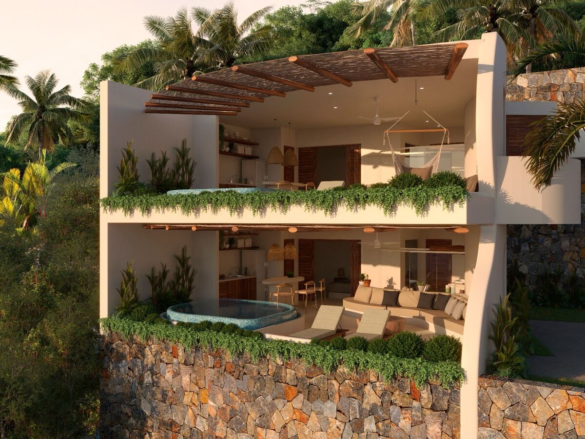 Este modelo de ofrece un espacio habitable de 200 m², con dos recámaras y dos baños, además de sanitarios independientes.