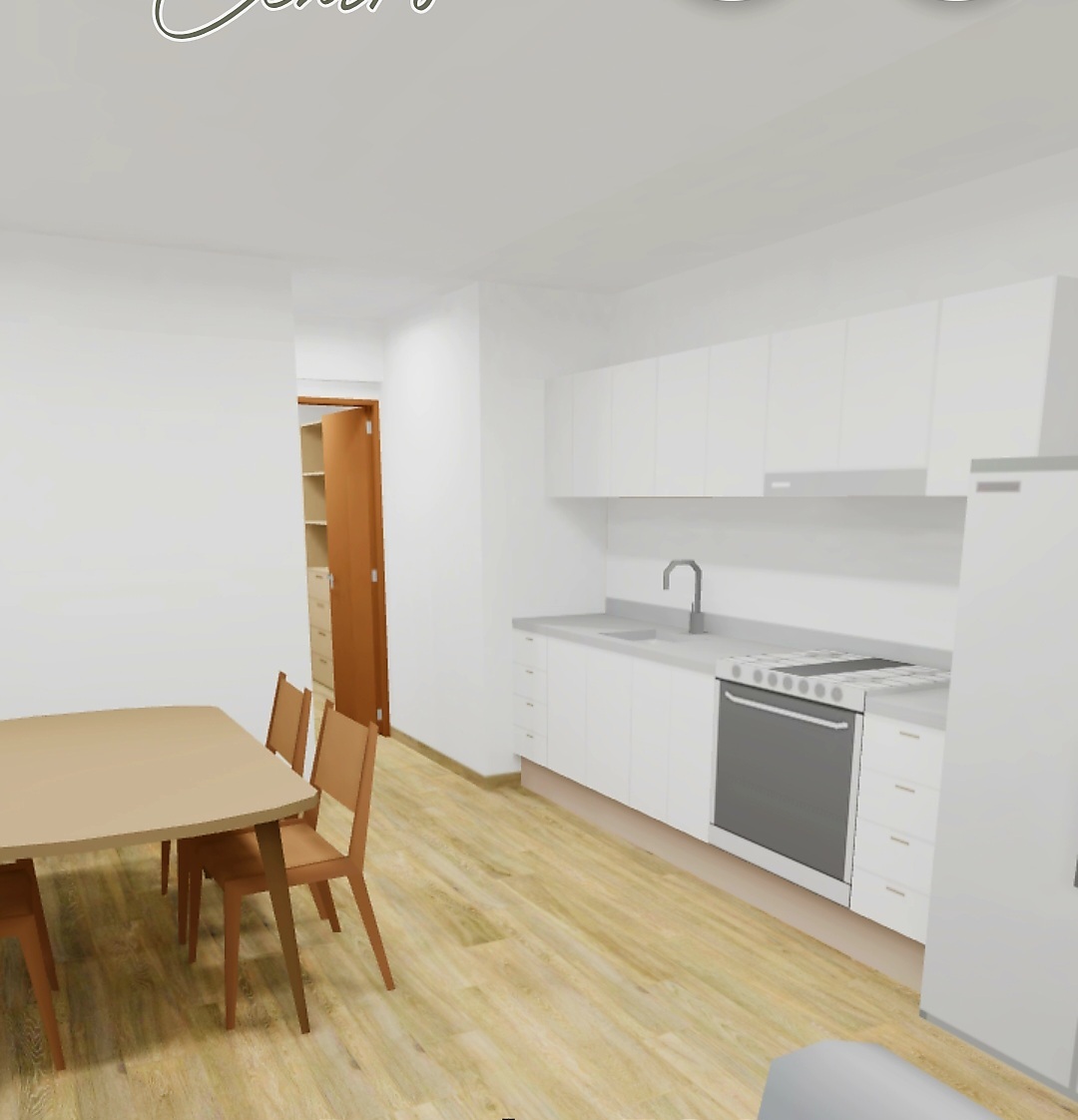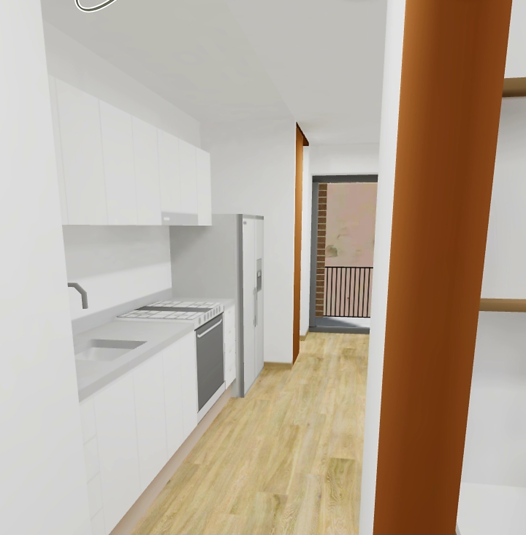 COCINA CON BARRA DE GRANITO BLANCO PIGMENTADO