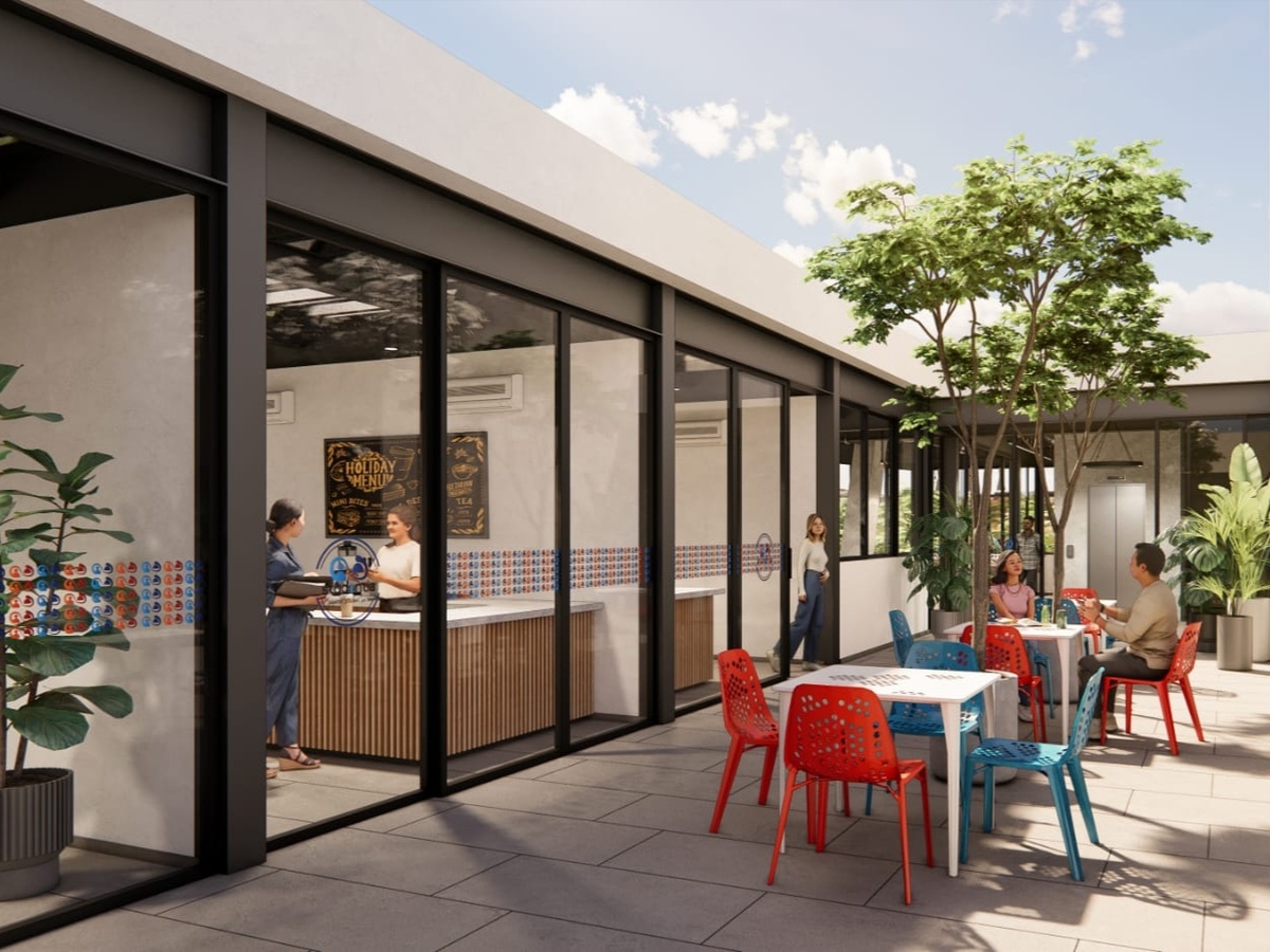- Áreas comunes como cafeteria, co-working, gimnasio, área comercial, stu-market, enfermeria, food curt, lavanderia, office store y alberca