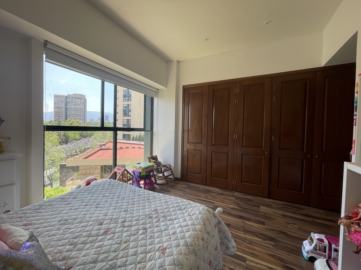 Departamento muy completo, con vistas verdes en todas sus ventanas y muy iluminado .