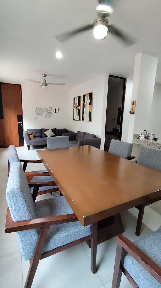 Furnished Apartment in a Private Community, on the ground floor, 50 meters from Temozón Avenue, a step away from restaurants, Oxxo, shopping centers, and the ring road.
