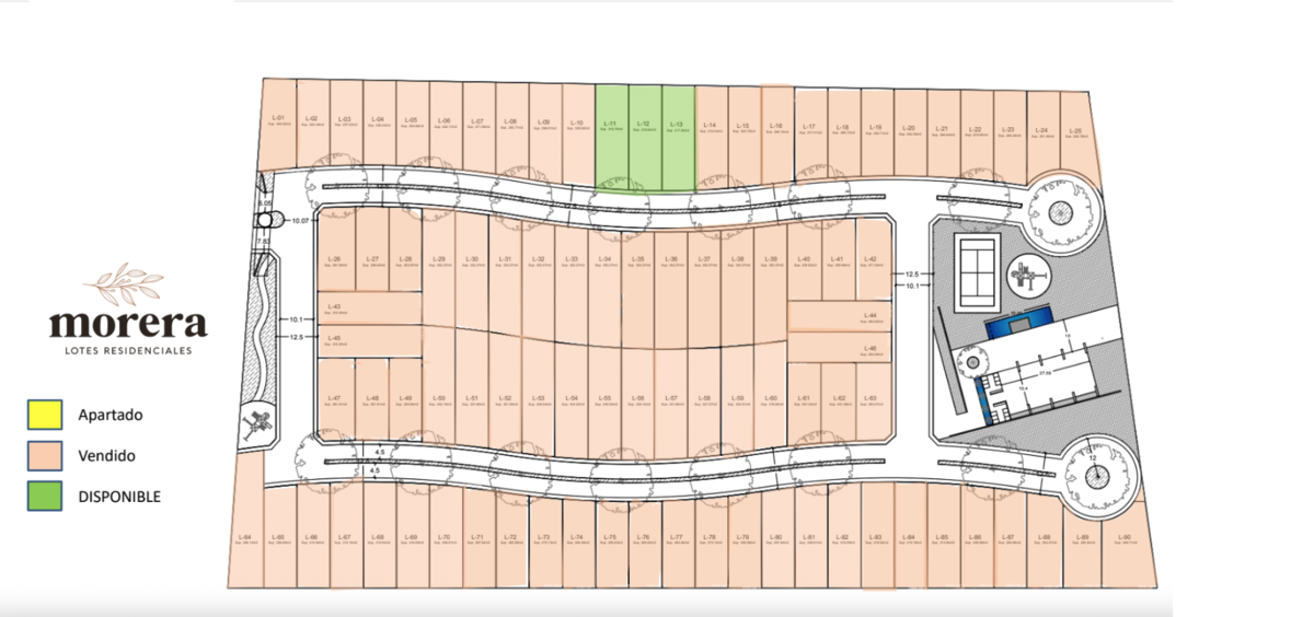 El diseño de los espacios está integrado por 90 lotes residenciales que van desde los 250 hasta los 350 metros cuadrados, todos de uso habitacional, 86 de ellos orientados de norte a sur y los 4 restantes de este a oeste frente a los espacios verdes de Morera.