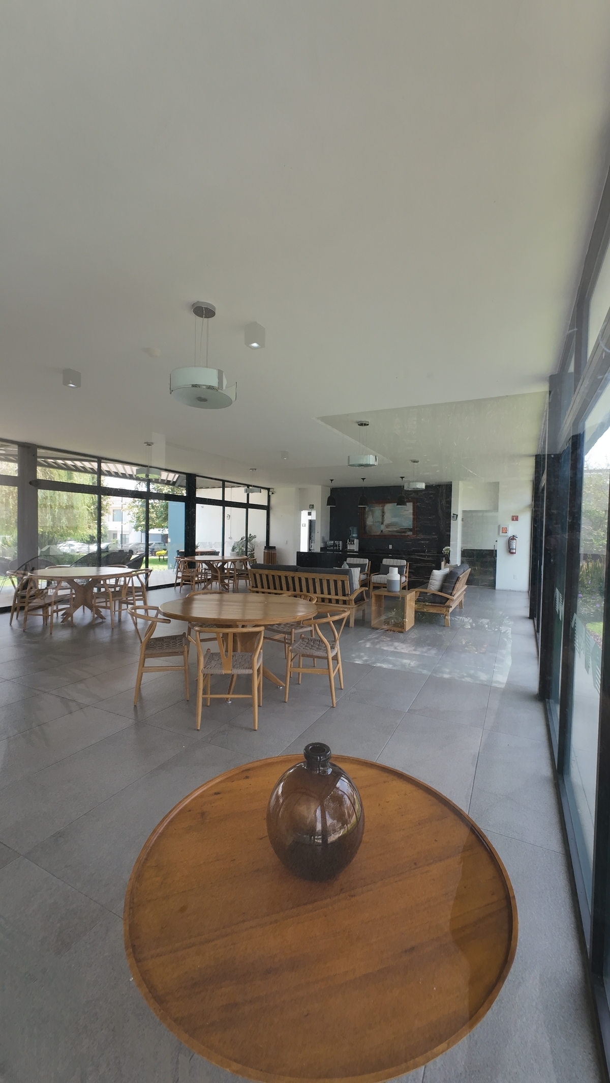 Terraza para eventos, áreas de juegos infantiles y extensas áreas verdes.
