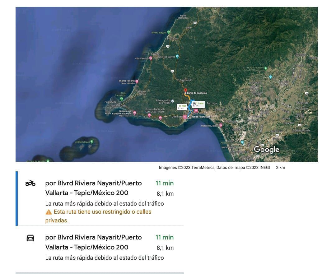 El terreno se cuenta con ingreso a la nueva autopista a Vallarta e ingreso a la libre a Puerto Vallarta Tepic, está a 5 km del Pueblo Mágico de Sayulita, 8 Km de la Cruz de Huanacaxtle que cuenta con un bonito Malecón y restantes de Buen nivel, además de La Manzanilla de la Paz una de las Playas más bonitas y Tranquilas, además de 20 min a Punta Mita dónde se puede tomar una lancha a las Marietas una de las maravillas naturales más bonitas de México, 30 a 45 minutos a Puerto Vallarta, Bucerías 10 min , Nuevo Vallarta 20 m , y muchas playas, hay autobuses urbanos que pasan por aquí, los que van a Sayulita, San Pancho y pasan cada 20 minutos, además todas las líneas foraneas que van hacia Tepic, zonas de Nayarit y Guadalajara, además de las plataformas de Uber, Didi y Indriver , Taxis y combis que dan servicio a la zona con Rutas hacia Vallarta, Nuevo Vallarta y Bahía de Banderas, a zonas del terreno con vistas al mar, ya sea Bucerías, a la bahía y Sayulita, por lo que se contará con excelente vistas , ya sea montaña o mar, en cuanto a la parte legal del terreno, se cuenta con Título parcelario por lo cual se puede escriturar, es trato detecto con Ejidatario no hay intermediarios, por lo cual es un trámite directo