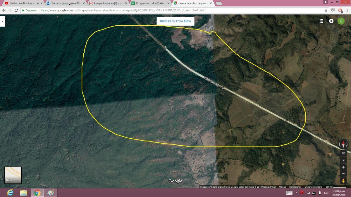El terreno lo atraviesa la autopista que va a tequila quedando 8 hectareas del lado de Tequila y el resto en el cerro de amatitan