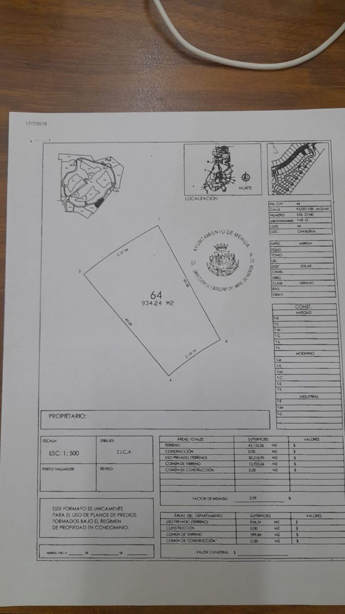 Lot 64 with an area of 934.24 square meters is offered for sale, located on Paseo del Jaguar Avenue, in Chablekal, Mérida. The property is available for a price of $6,800,000 MXN.