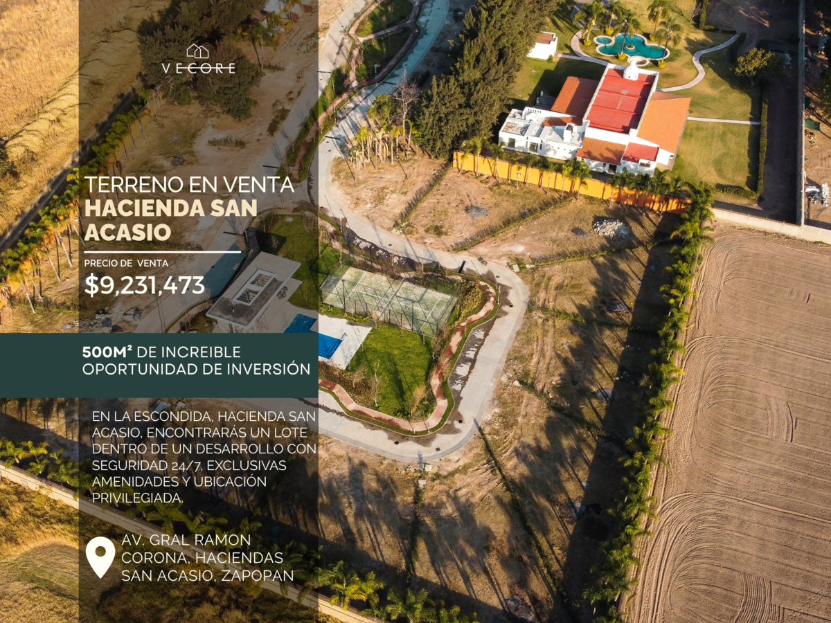 PRICE AND AVAILABILITY SUBJECT TO CHANGE WITHOUT PRIOR NOTICE.Imagina construir tu residencia en un entorno donde el lujo y la naturaleza conviven en perfecto equilibrio. En La Escondida, Hacienda San Acasio, encontrarás un lote dentro de un desarrollo con seguridad 24/7, exclusivas amenidades y ubicación privilegiada a solo 5 minutos del Tec de Monterrey, garantizando plusvalía, comodidad y estilo de vida premium.