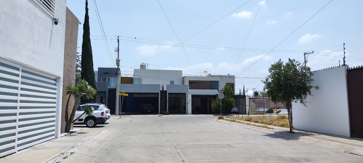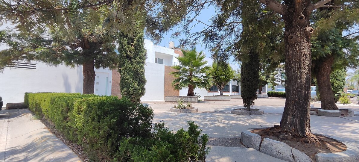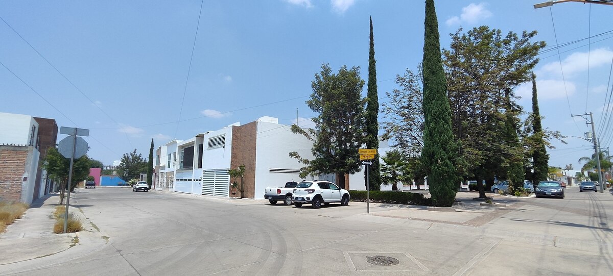 En zona de alta plusvalía, calles arboladas, fraccionamiento abierto.