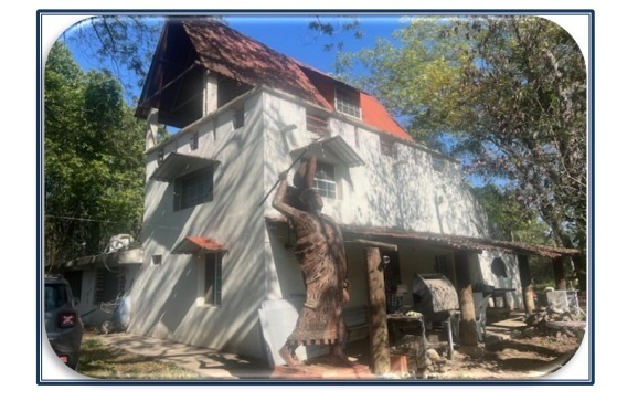 120 m2 of width at the back.Hermoso lugar para disfrutar de la tranquilidad la naturaleza y hermosas vistas , ubicado en una esquina en una de las zonas de mas alto crecimiento y demanda , cuenta con casa habitación y alberca en el cual se encuentran varias construcciones con 209 m2 de Construcción, PLANTA BAJA : Sala Comedor con doble altura , Cocina , baño completo con tina y una terraza , PLANTA ALTA : Una habitación con baño completo y una terraza ,( se quedó en obra gris no se termino al 100%). En el exterior se encuentra un baño uso alberca , se localiza a 2.4 km. de Carretera Nacional, únicamente 20m2 de terracería para llegar , a 500 Mts. de Cielo Mágico a 1.5 km de Manantial de Vergel , cuenta luz municipal , pozo y preparación para bomba de agua profundo, letrina , Arboles Frutales y 25 Nogales, tiene portón y malla ciclónica al rededor de todo el terreno.