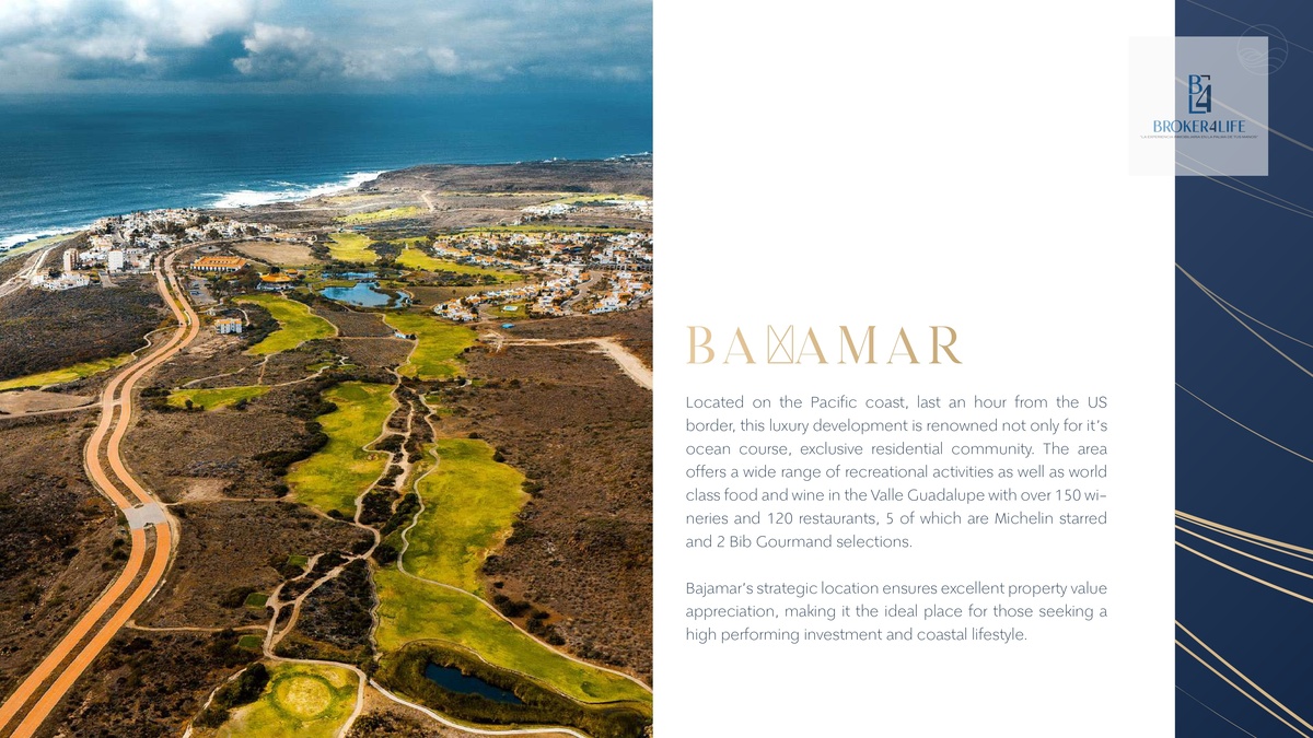 Bajamar es comunidad exclusiva residencial que cuenta con un hotel resort con campo de golf. Dentro de esta propiedad se encuentra el fraccionamiento privado con ubicaciones frente al mar.