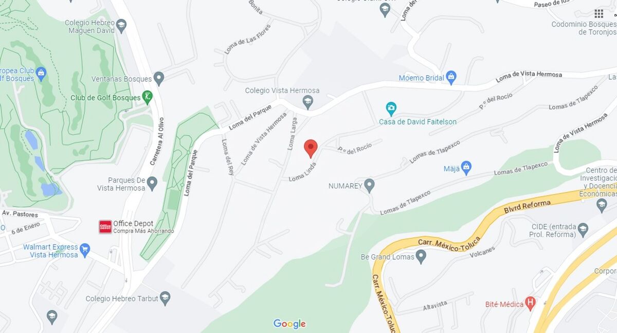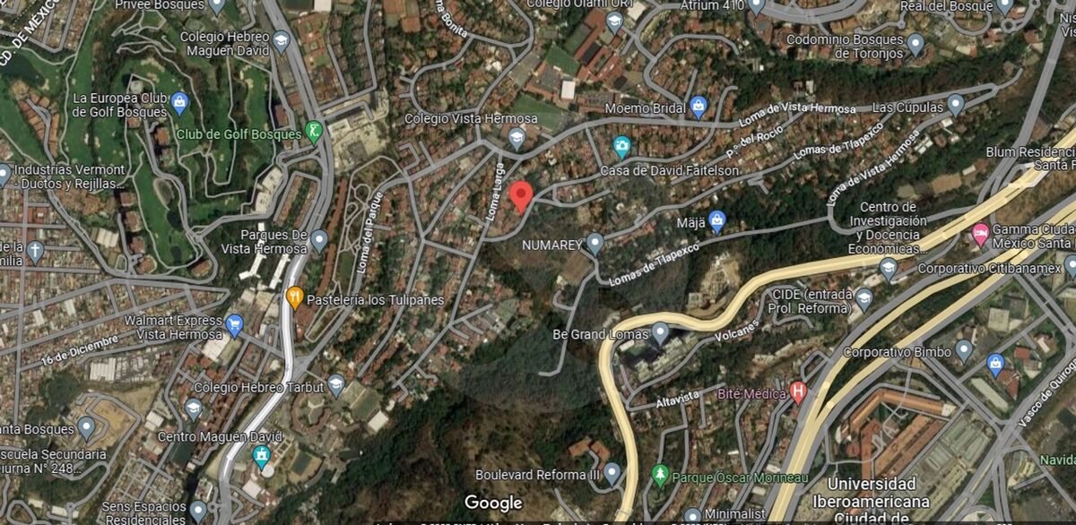 Calle Loma Linda, Lomas de Vista Hermosa. Unique residential land in front of a park in the entire neighborhood, with a slight slope of less than 5°. Located on a semi-closed street with security, privileged green view. Single-family, unique in the entire neighborhood. It is 326 square meters in the deed. Residential land in front of a park. Maintenance fee is $2,366 pesos per month.