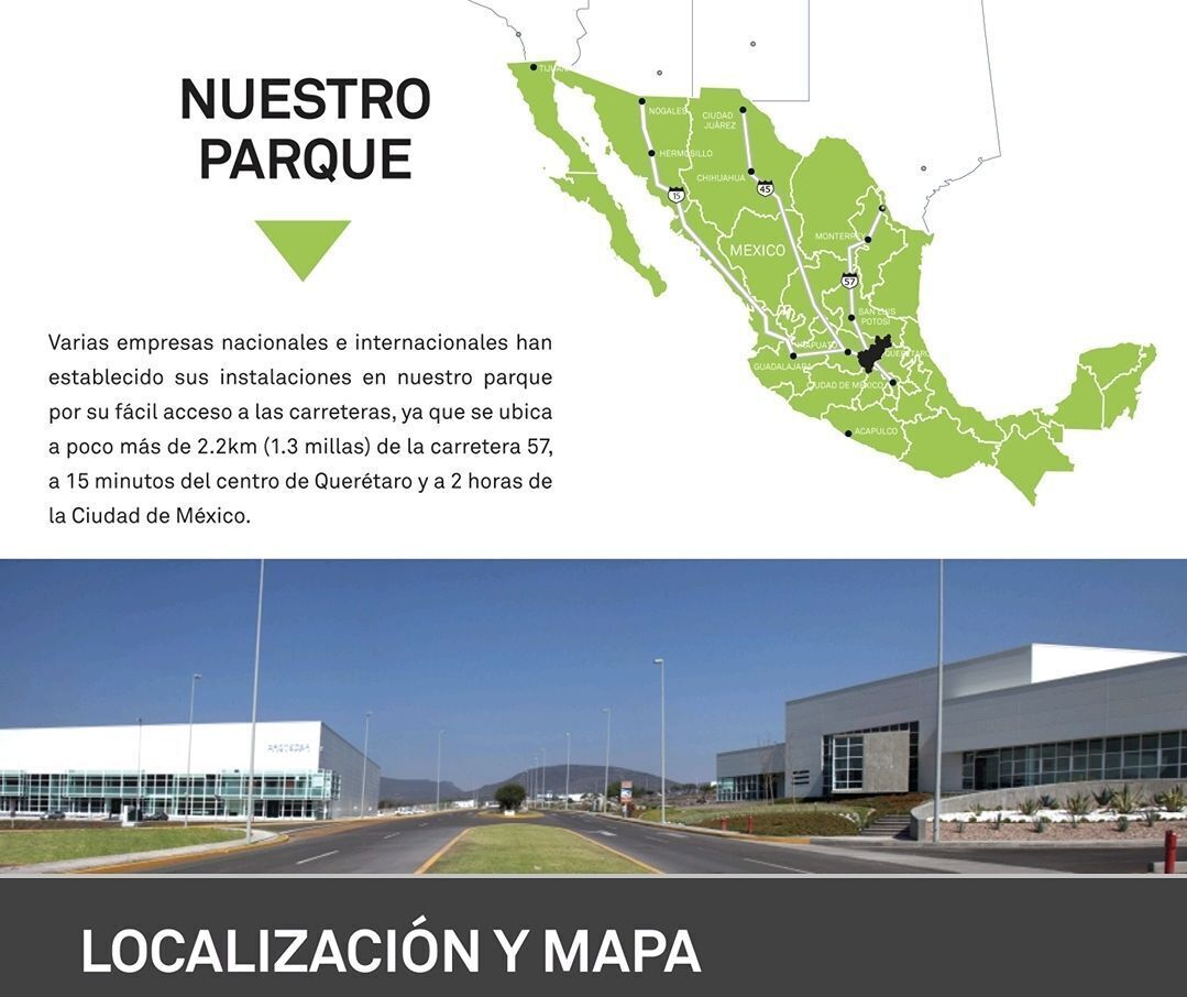 It borders two of the most important industrial corridors in the state: Bernardo Quintana Industrial Park and El Marqués Industrial Park.