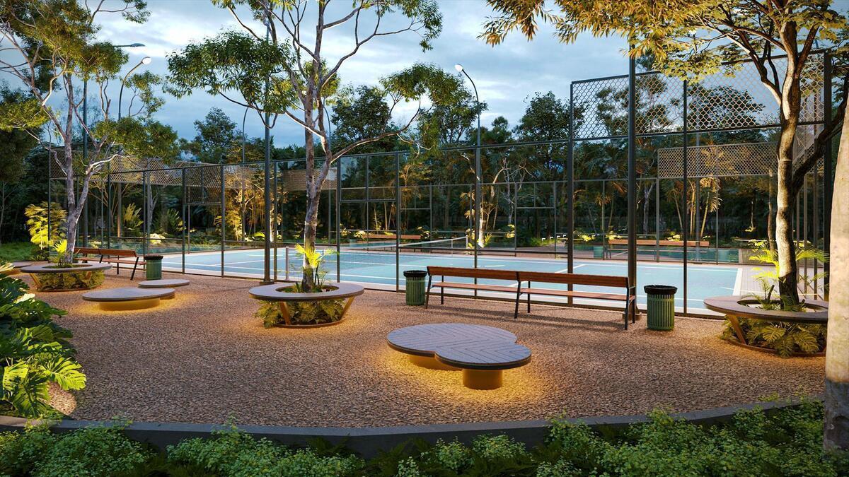 Amenidades: Cenote natural, club de playa a orilla del mar en Holbox, parque para mascotas, zona grill, parque infantil, zona de hamacas, pool bar, cancha de padel, casa club, piscina, área de yoga, gimnasio al aire libre, múltiples áreas verdes y áreas comerciales.