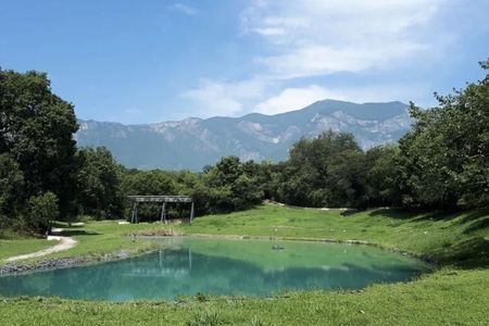 Ubicado cerca del puéblo mágico de Santiago en zona de Carretera Nacional. Además de contar con amenidades como alberca y gimnasio.