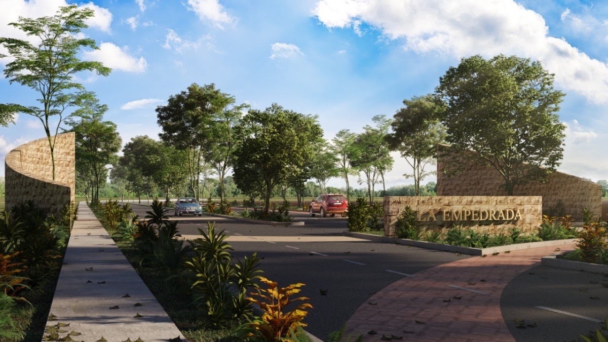 *This is a render that may vary from the actual result.*La empedrada es un plan de inversión desarrollado en Conkal, el cual consta de 55 hectáreas divididos en lotes y macro lotes.
