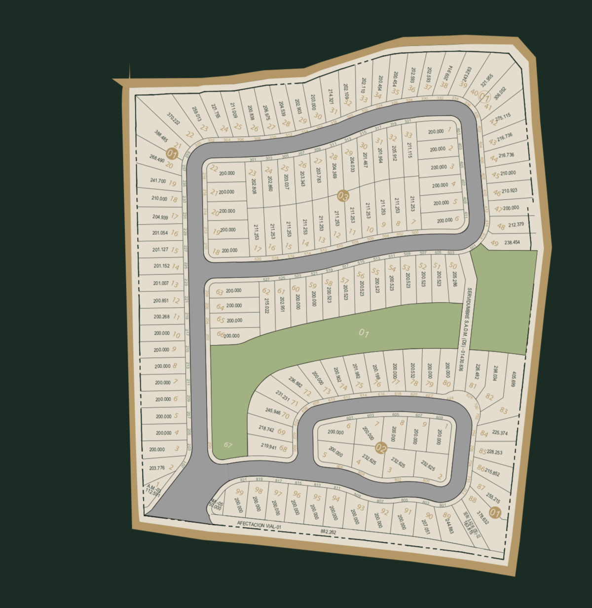 - 110 lotes residenciales desde 200 m² hasta 350 m²