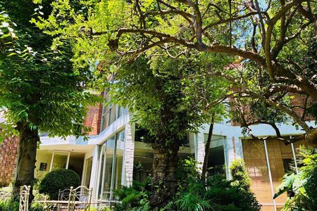 Surrounded by shops. The house is divided into a main house and an apartment.